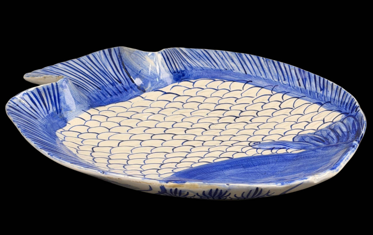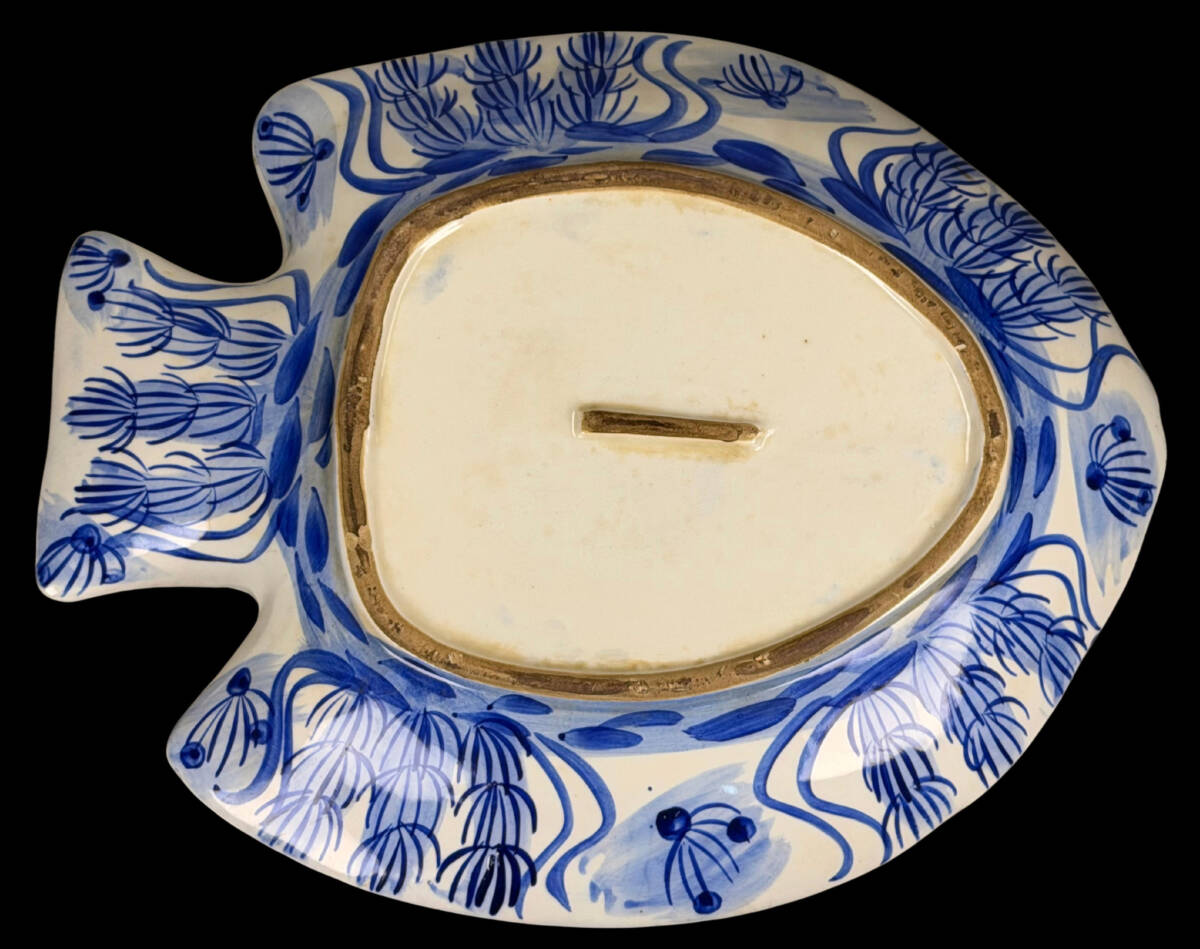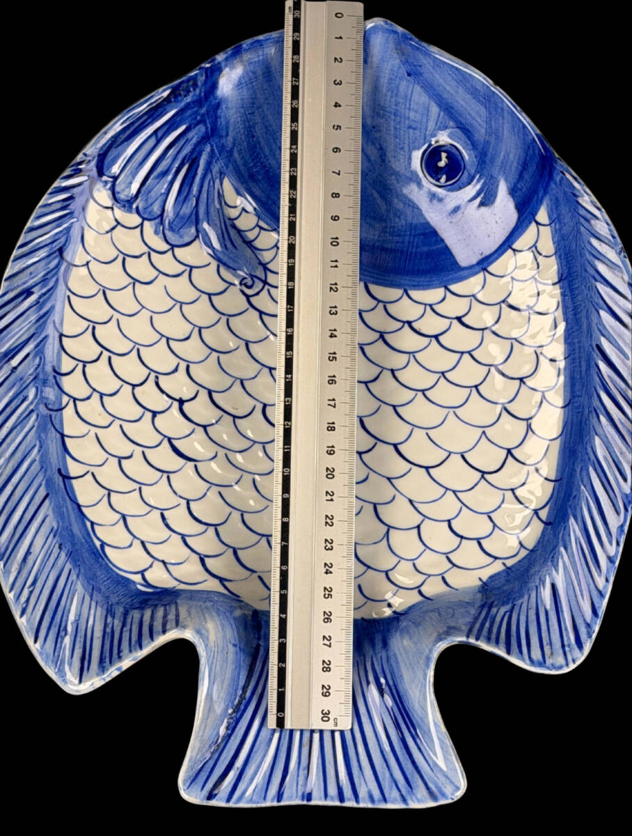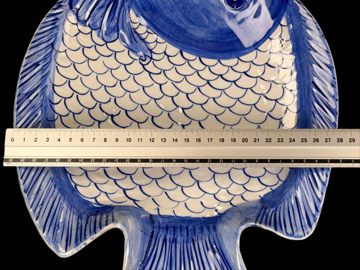 【忠古堂】古伊万里 染付 魚型盛り 大皿 直径約33.5㌢ 横幅約28㌢ 飾り皿 j-270