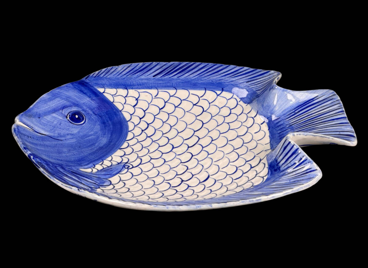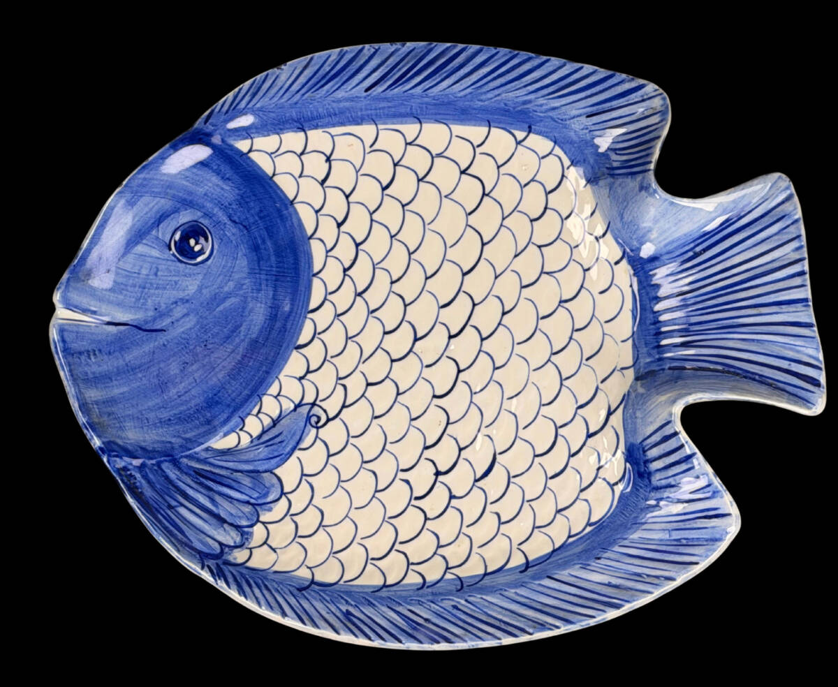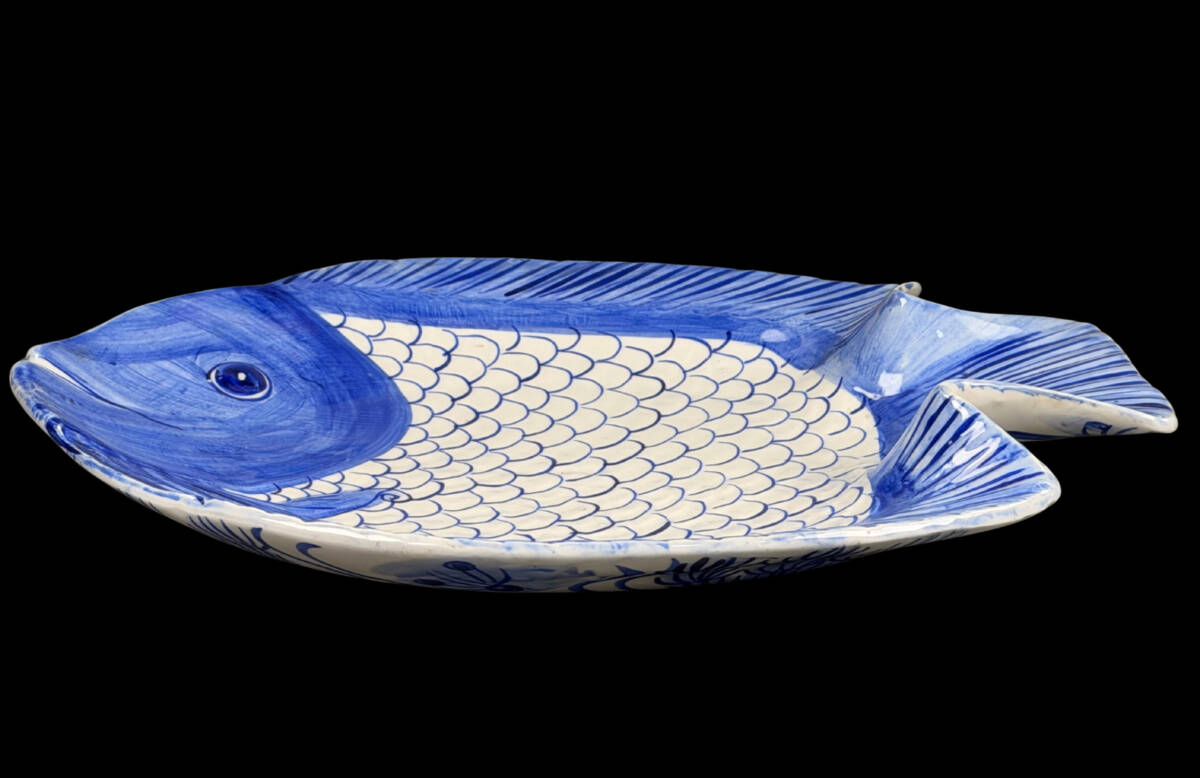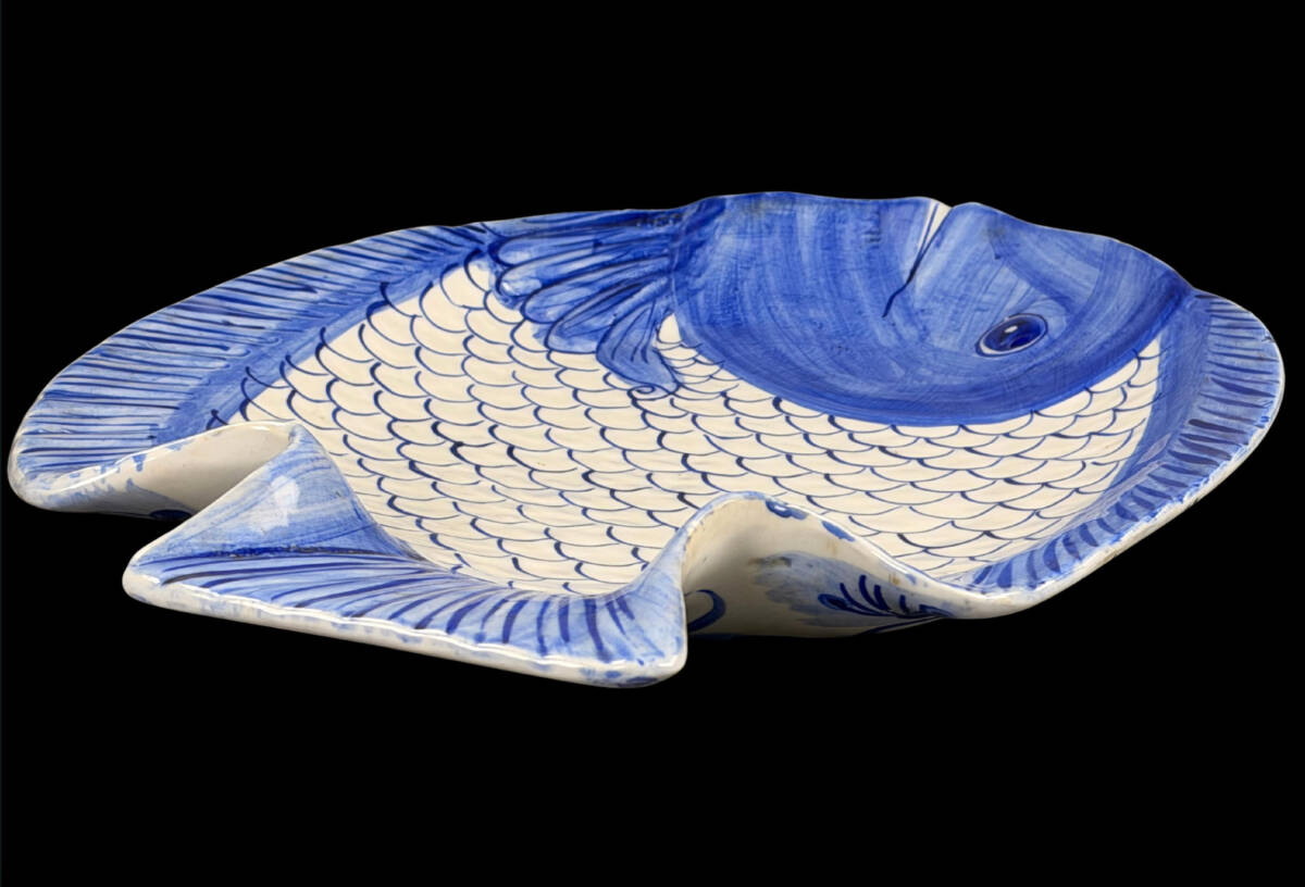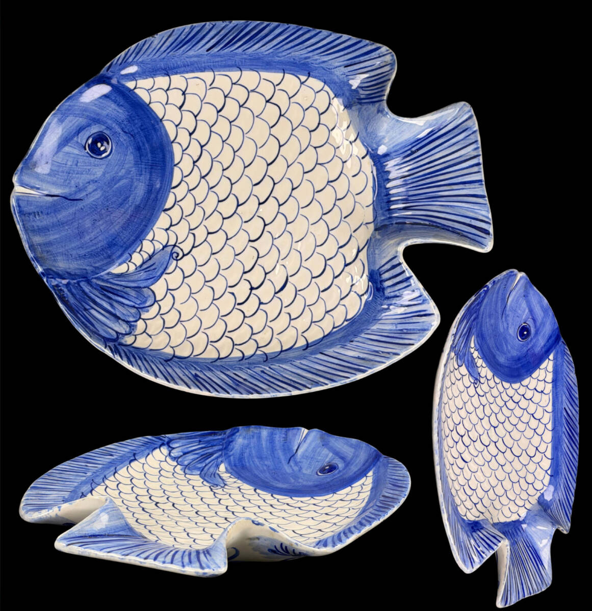 【忠古堂】古伊万里 染付 魚型盛り 大皿 直径約33.5㌢ 横幅約28㌢ 飾り皿 j-270