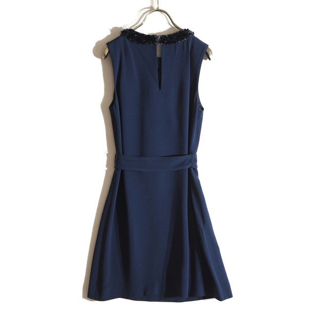 ビーズ付き ノースリーブ ミニワンピース ネイビー 36