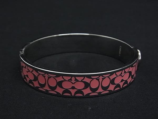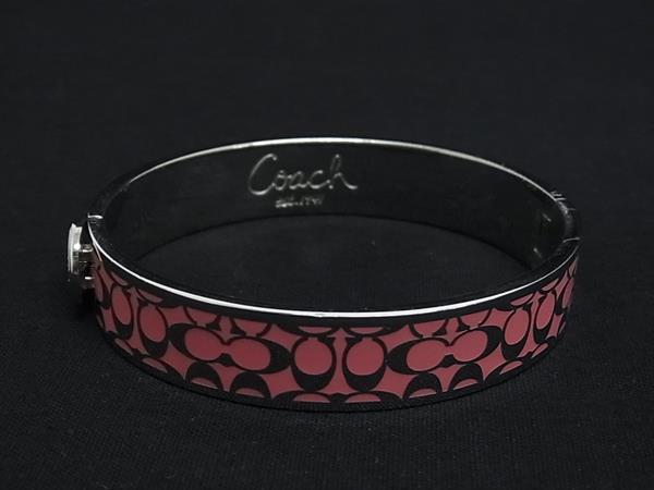 ■美品■ COACH コーチ シグネチャー バングル ブレスレット アクセサリー レディース ピンク系×シルバー系 DI1420