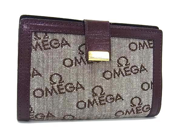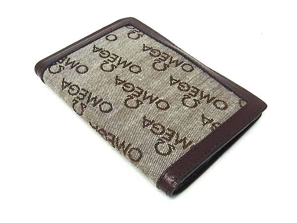 ■新品同様■ OMEGA オメガ キャンバス×レザー カードケース カード入れ パスケース 定期入れ メンズ グレー系×ブラウン系 DY2525