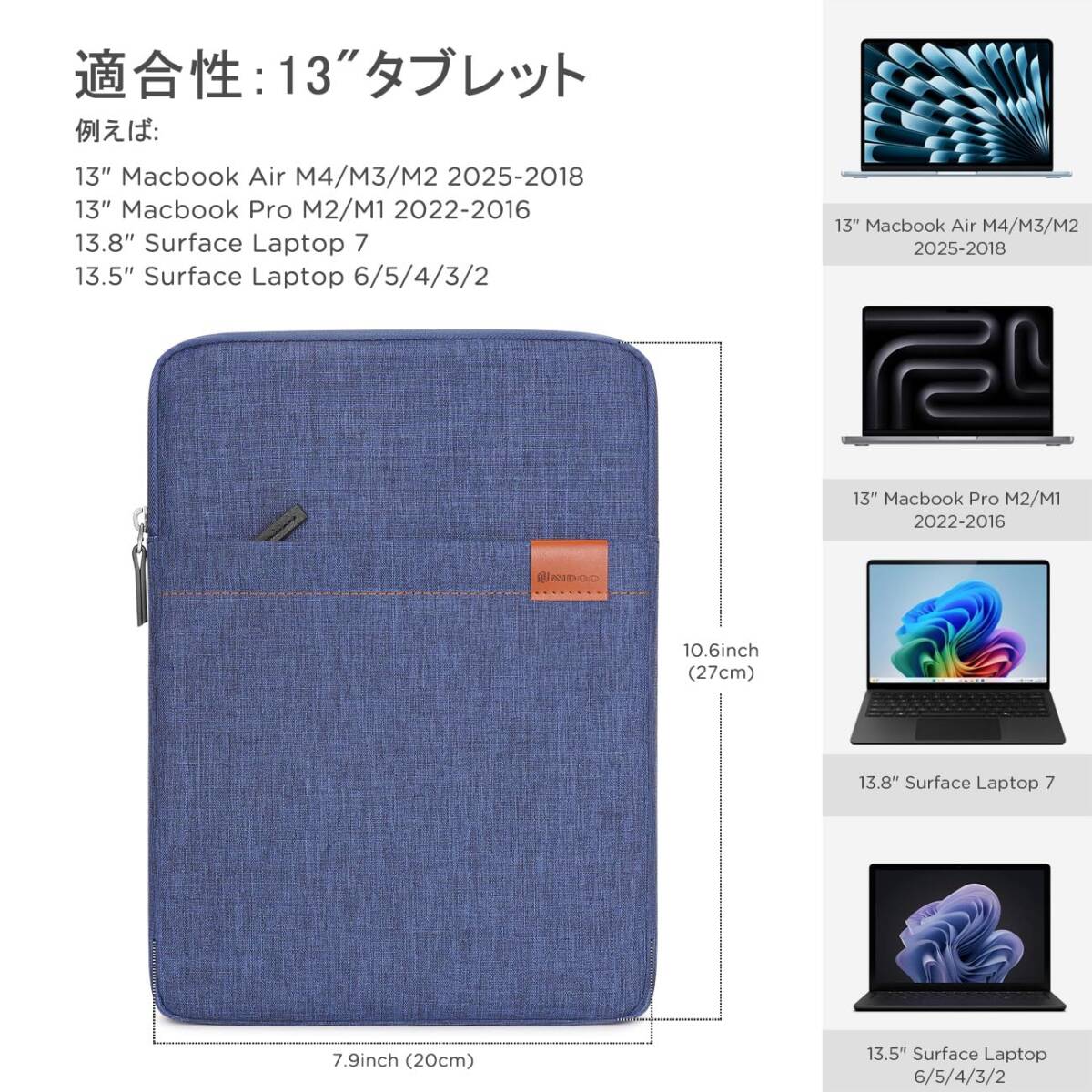 NIDOO タブレットケース 13インチラップトップケース (Macbook Air 13 M4/M3/M2/M1, MacBook Pro 13, 13.8" Surface Laptop 7, 13" Latitude 5350/7350, 13.4" XPS 13, 13" ThinkPad X13 L13 Gen 5) Tablet HP Laptop Sleeve 13", ブルー
