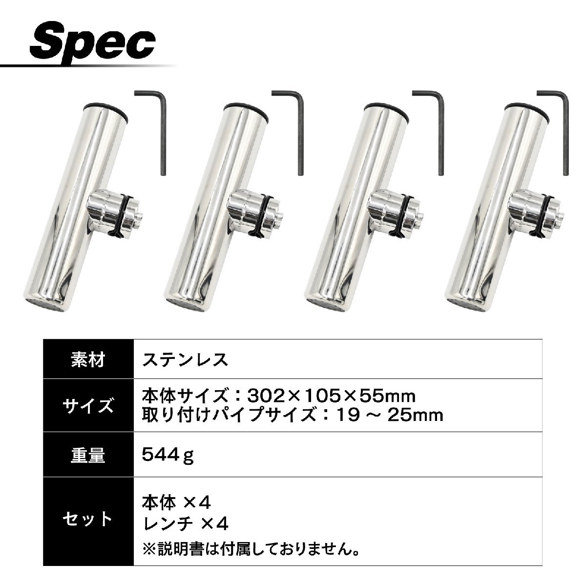 ロッドホルダー ステンレス 船 船竿置き クランプオン 4個セット 無段階角度調節可能 (4本セット)