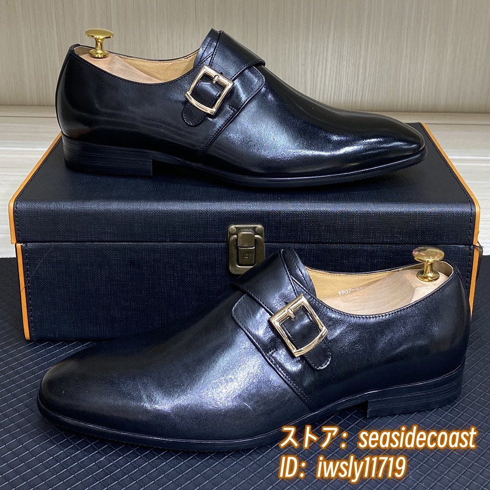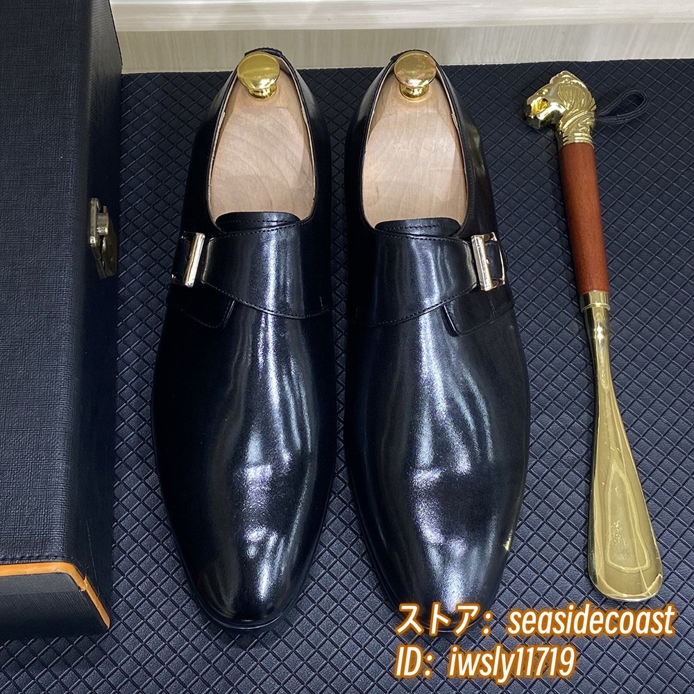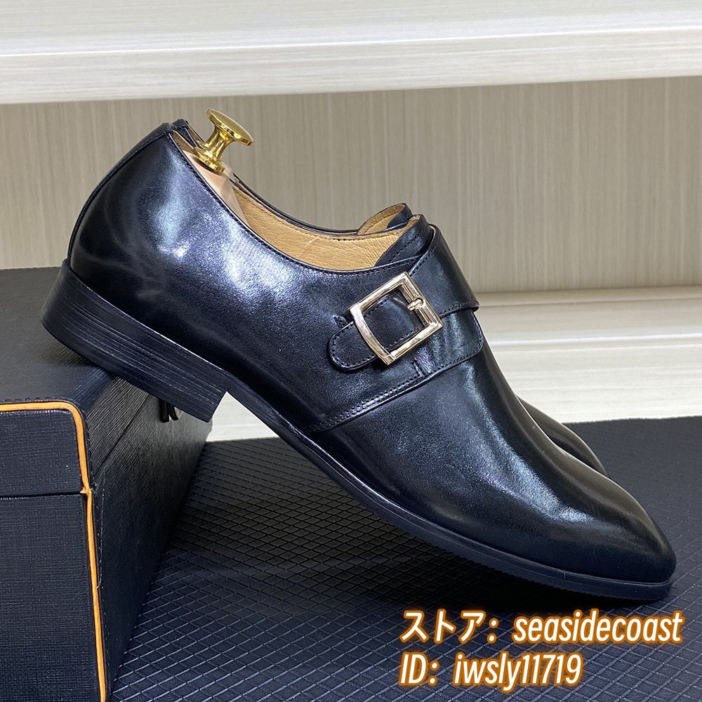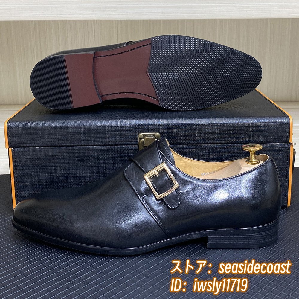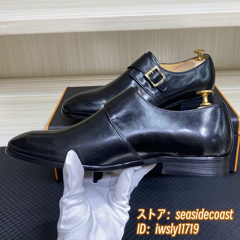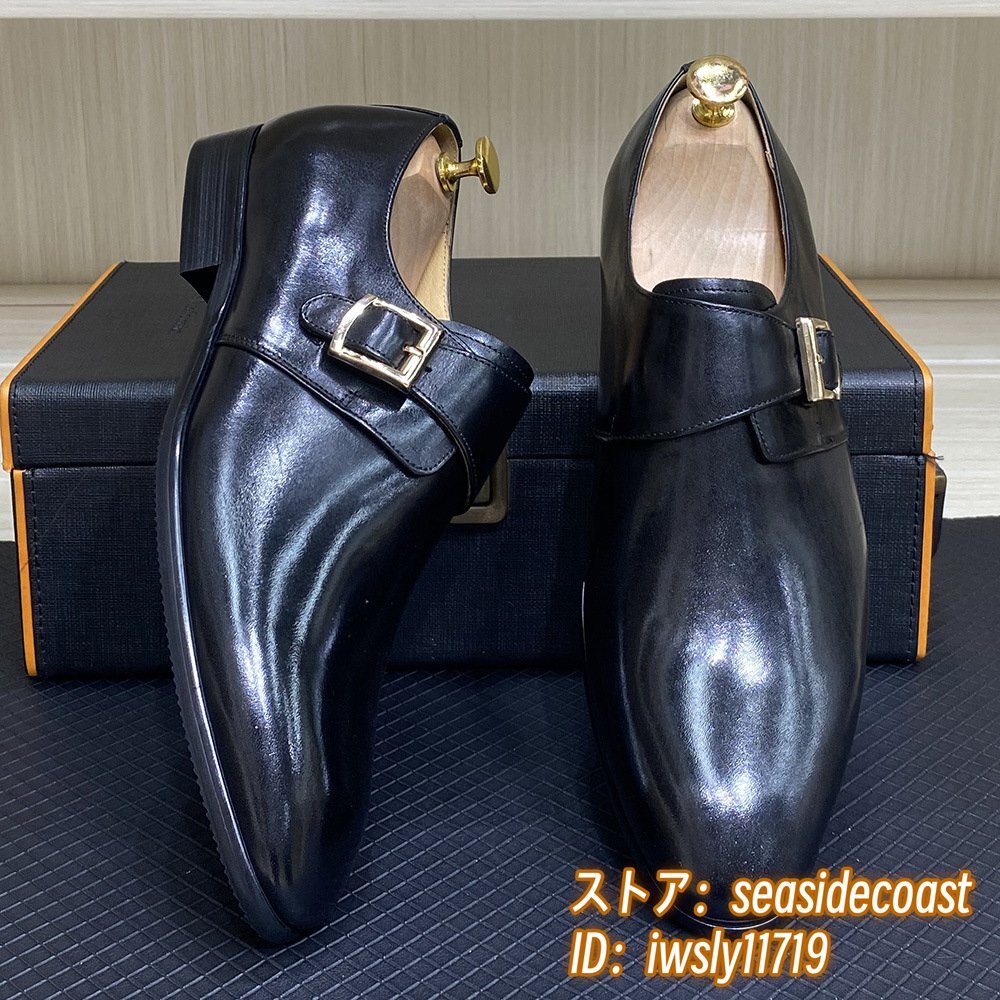 定価10万◆モンクストラップ メンズ 本革 レザーシューズ 職人手作り ビジネスシューズ 新品 紳士靴 本牛革 革靴 フォーマル 黒 24.5cm