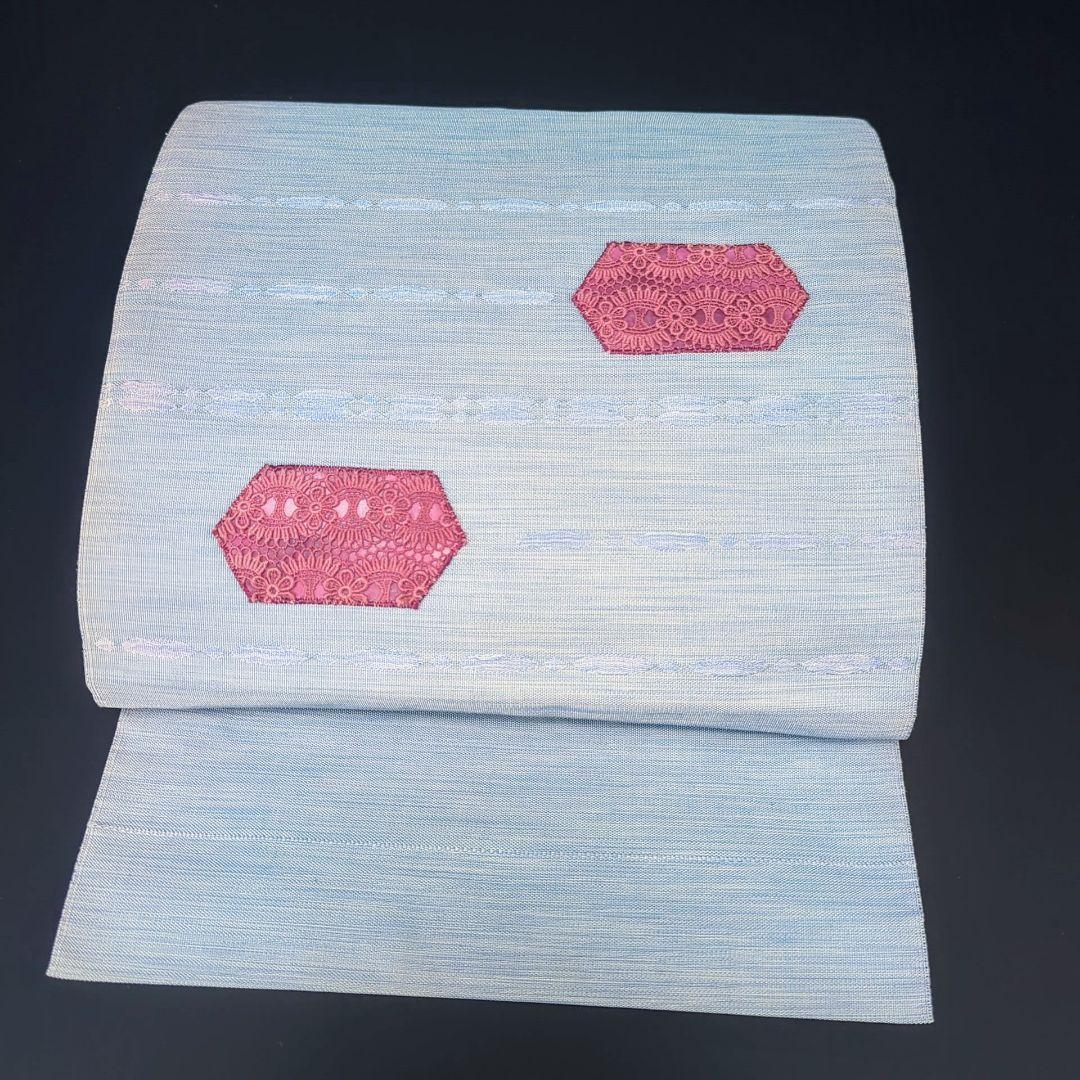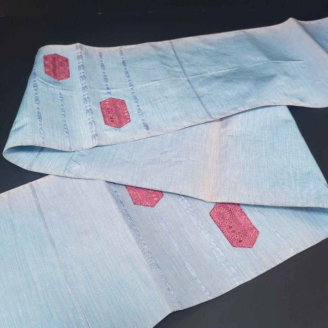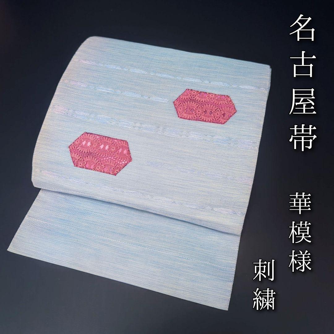 松葉仕立て 化繊 八寸 カジュアル 刺繍 華模様の名古屋帯になります^ ^