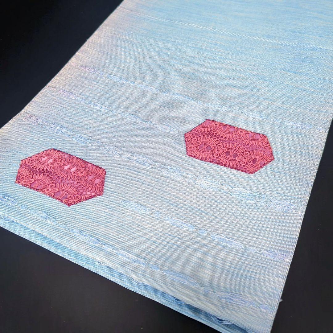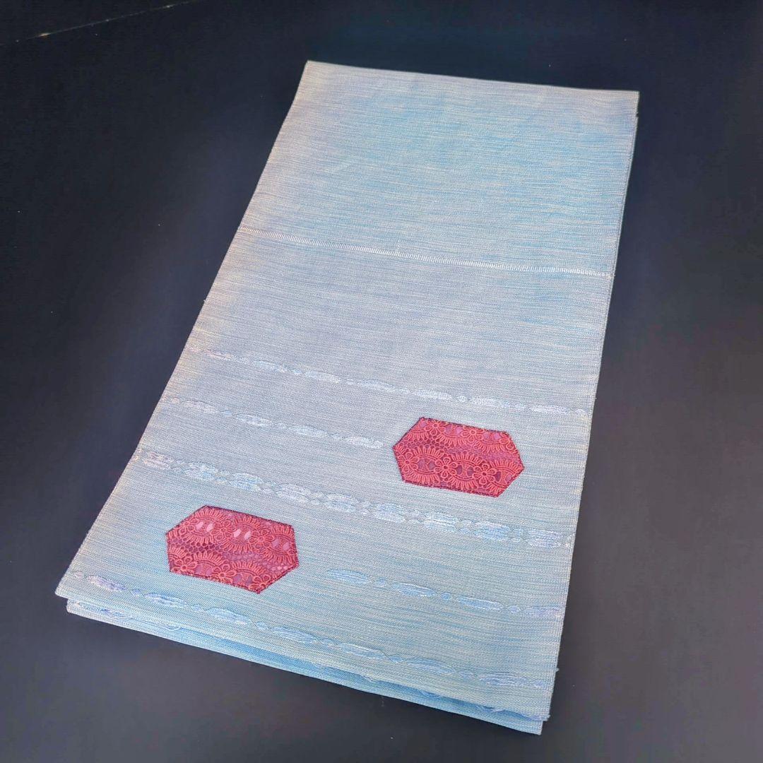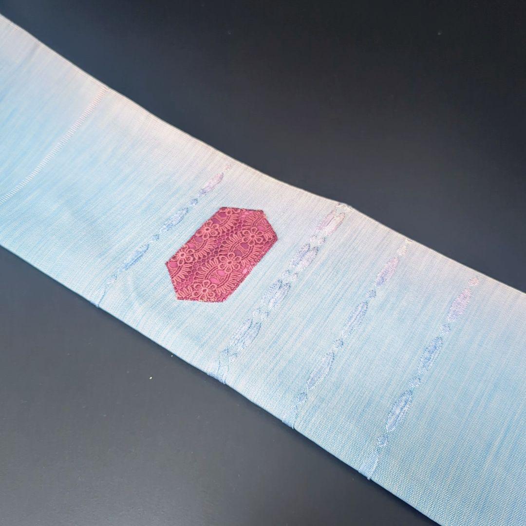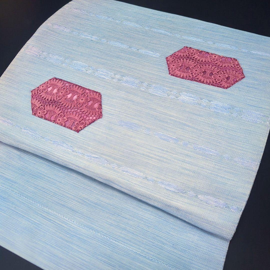 松葉仕立て 化繊 八寸 カジュアル 刺繍 華模様の名古屋帯になります^ ^