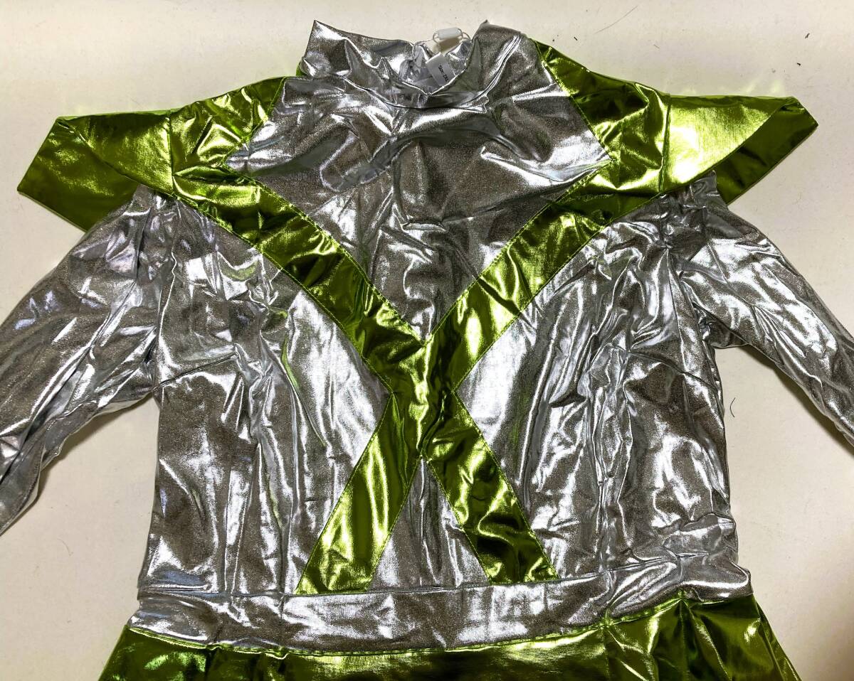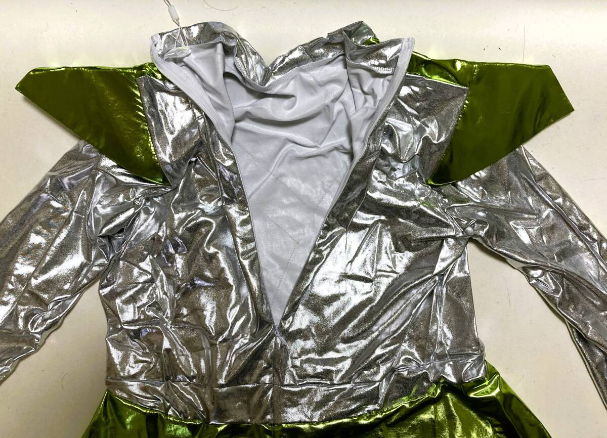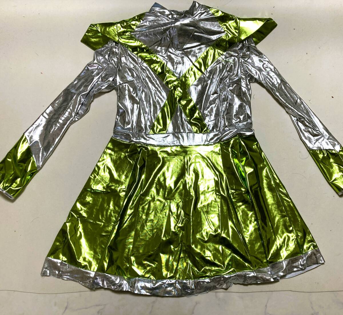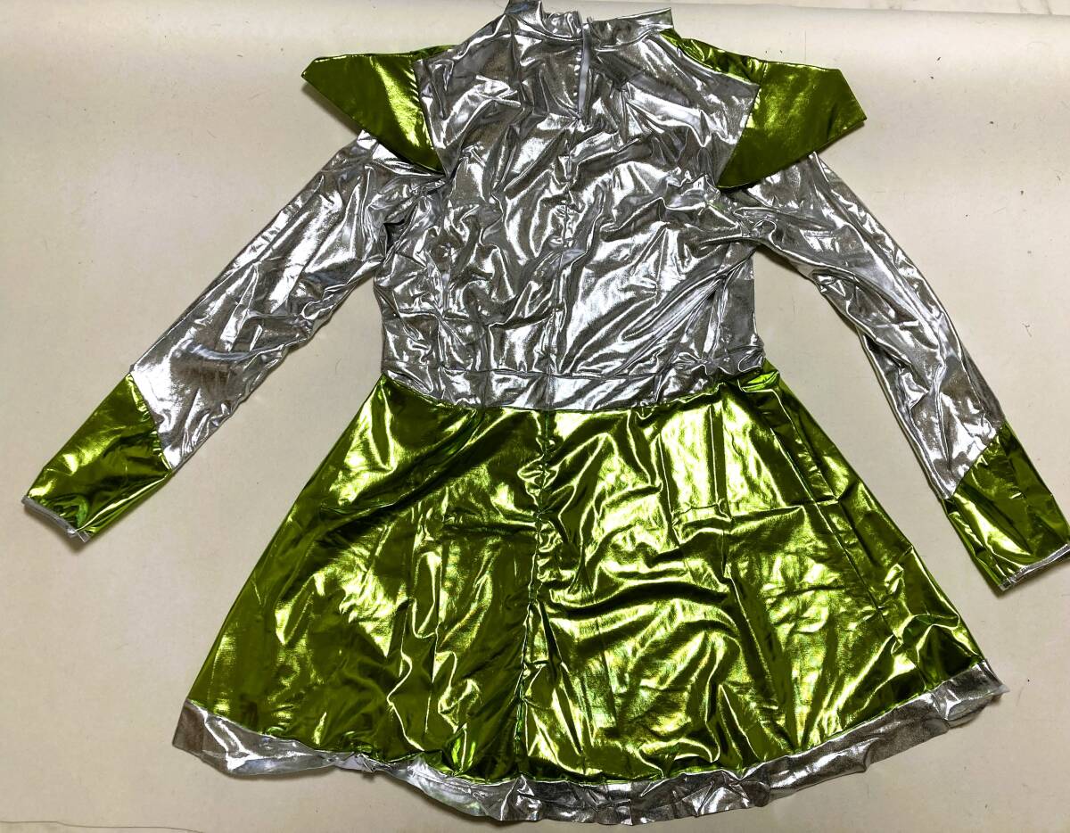 超新作 特大2XL/グリーン イベント コスチューム ホログラム スペース戦士光沢Aラインロングスリーブ コスプレ ステージ衣装 IEFIEL社製