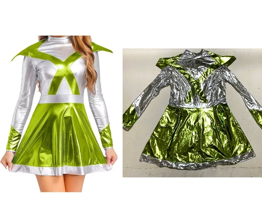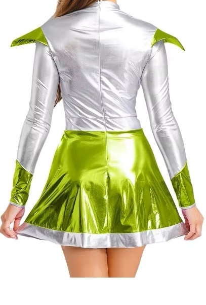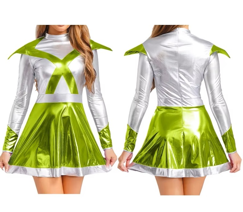 レディースエイリアン宇宙飛行士コスプレドレスメタリック光沢のあるAラインドレススペース女性戦士ドレスパーティーイベントコンペティションコスチューム
