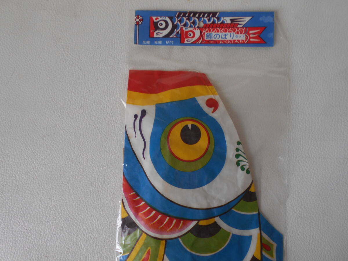 レトロ 紙製 鯉のぼりセット 黒鯉 赤鯉 柄竹 未開封自宅保管品
