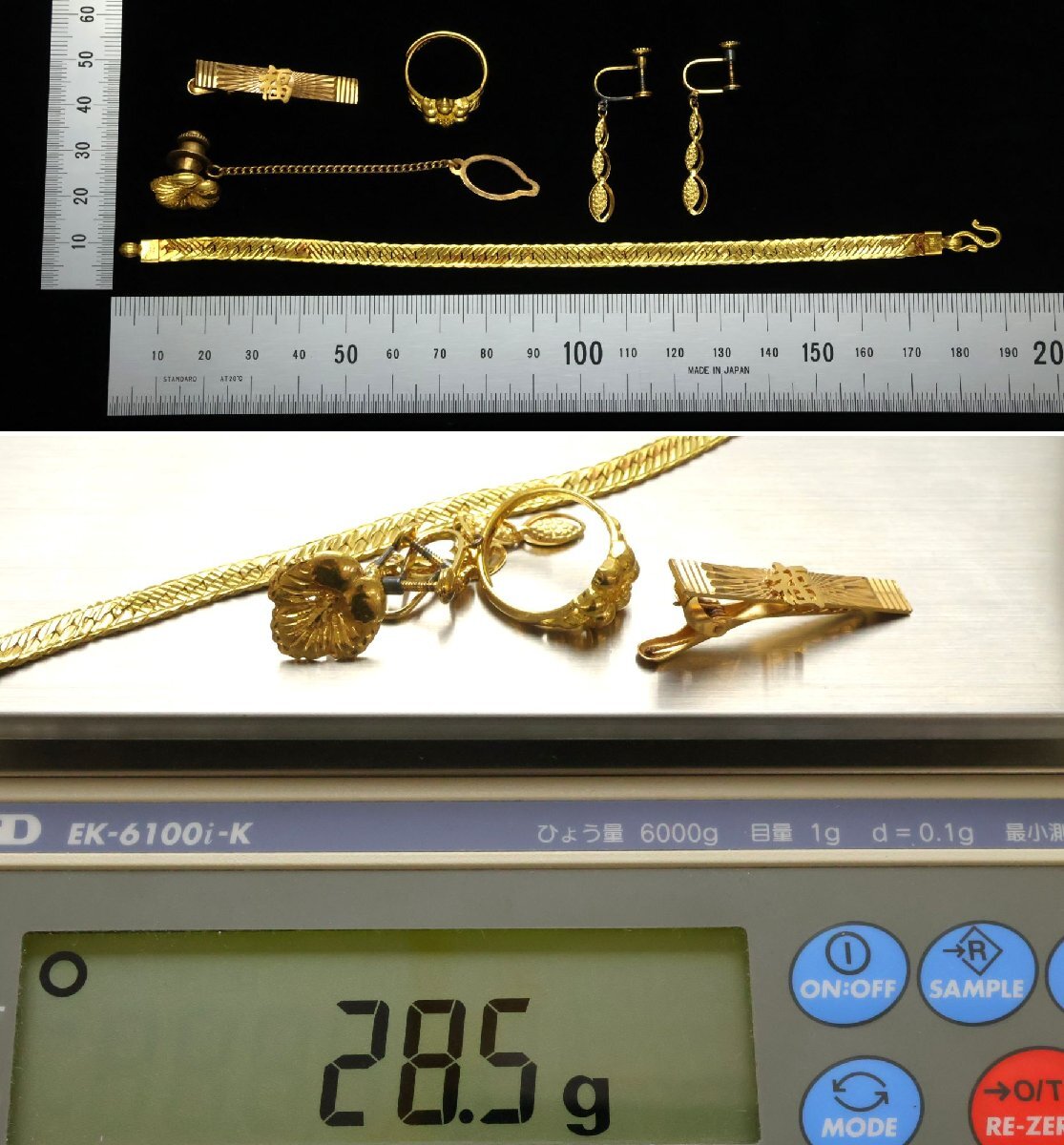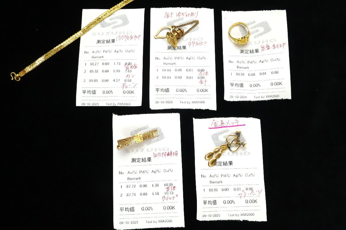 おたからや◆K20~K24相当ジュエリー 5点《約28.5g》地金ブレスレット,リング(1点メッキ含む) ※X線結果ご参照下さい【B-YA02530】