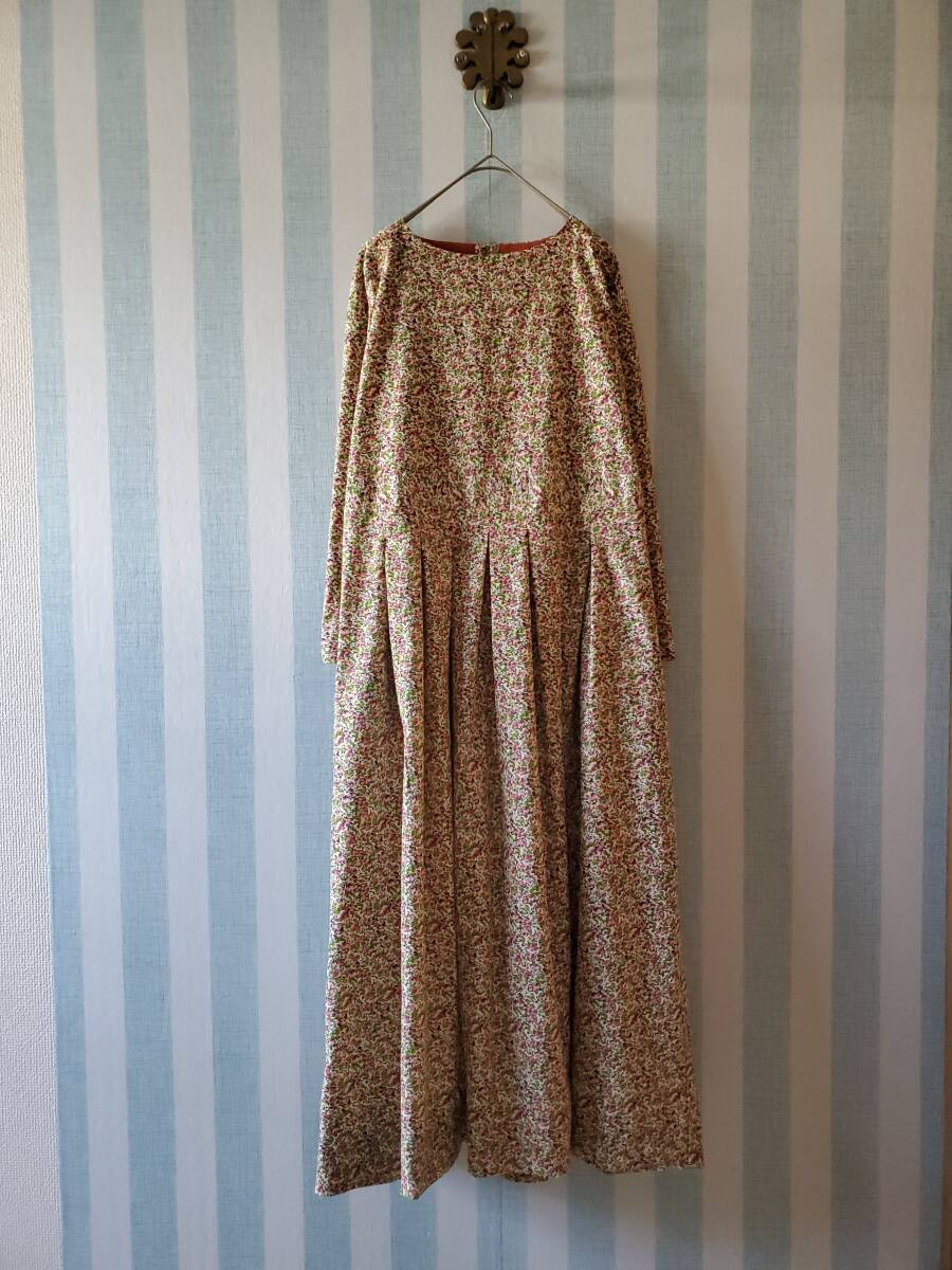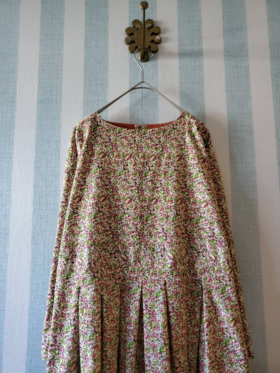 ★KOKOMO★コーデュロイ 花柄 タック ワンピース フリーサイズ