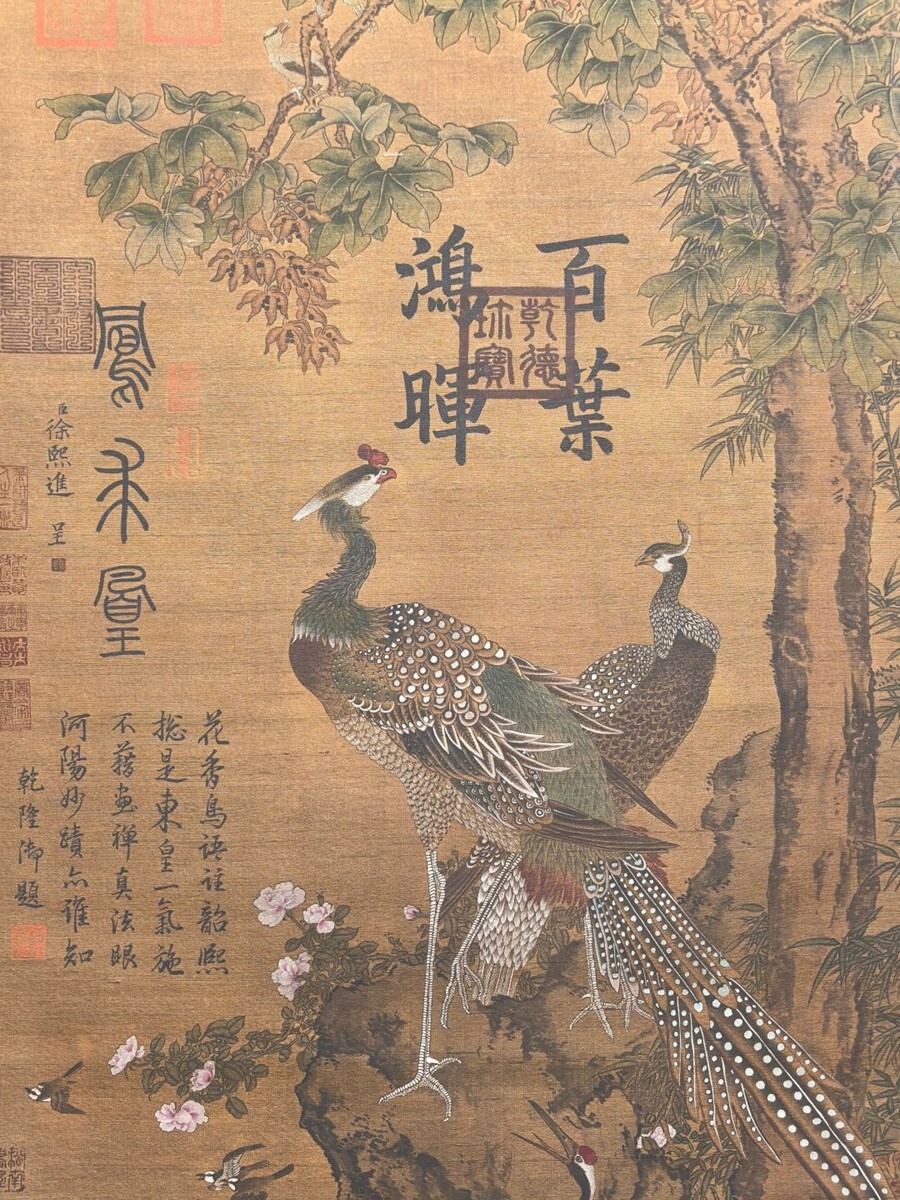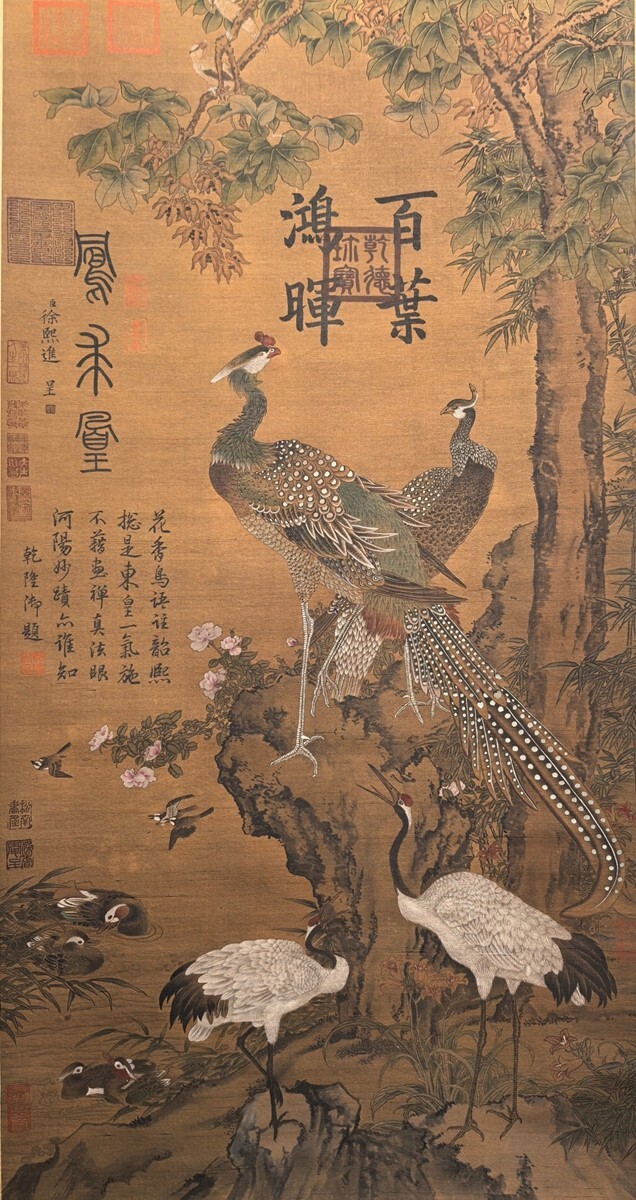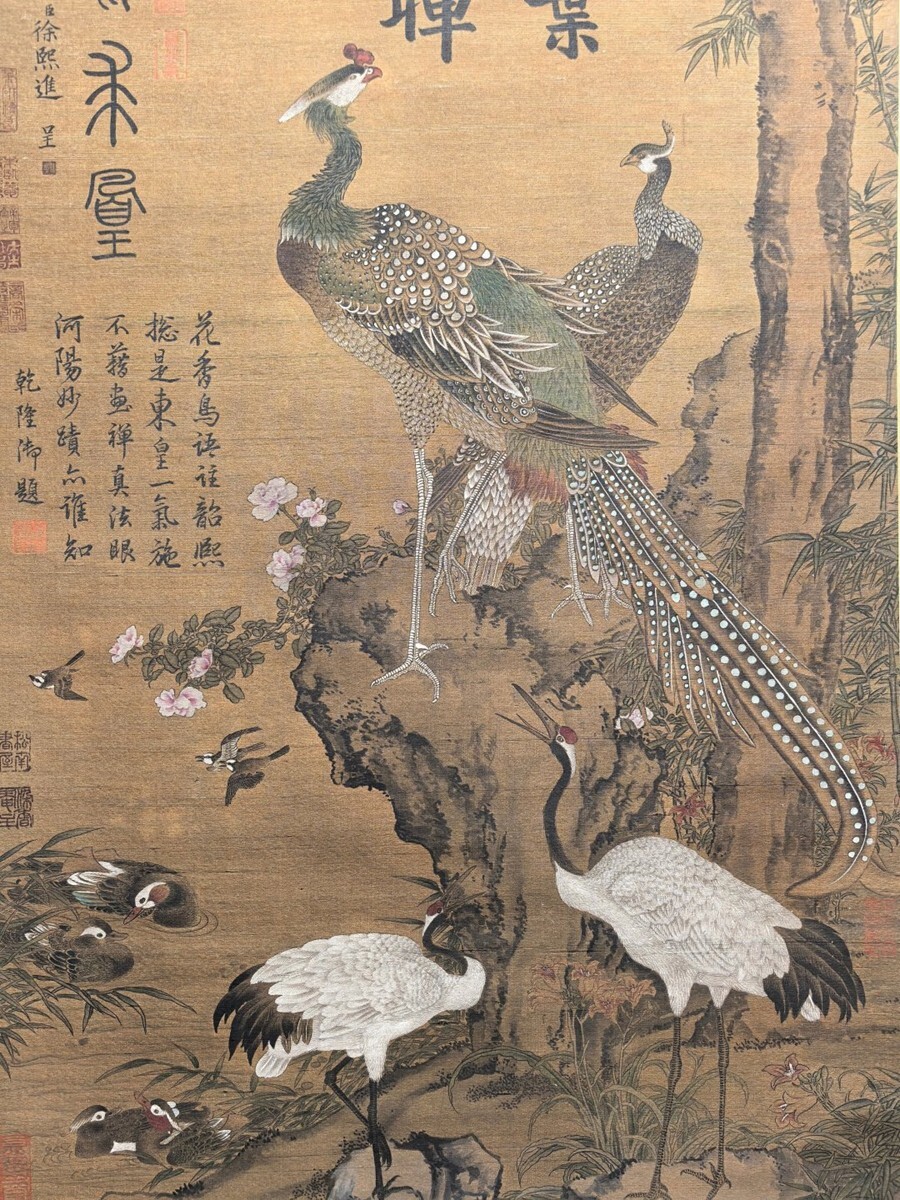 【瓏】「徐熙作 鳳求凰図対聯」五代南唐画家 肉筆絹本 掛け軸 書画立軸 巻き物 中国書画 古美術 蔵出