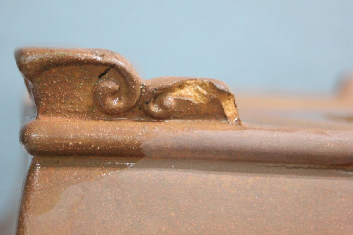 植木鉢 気に入っていた鉢ですが  傷があります 落款あり 395X300X110mm 時代相応の汚れはあります