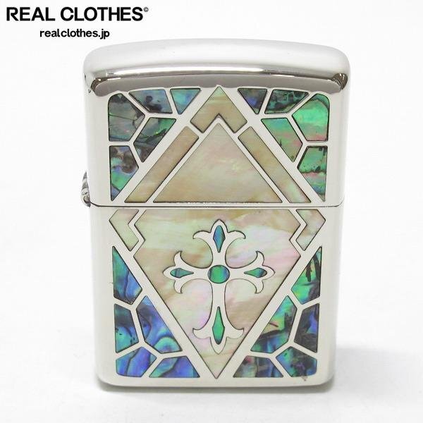 ZIPPO/ジッポ アーマーケース インレイドシェルグランデ貝 クロス 片面加工 05年製 /UPK | ||||||||||||||||||||||||||||||