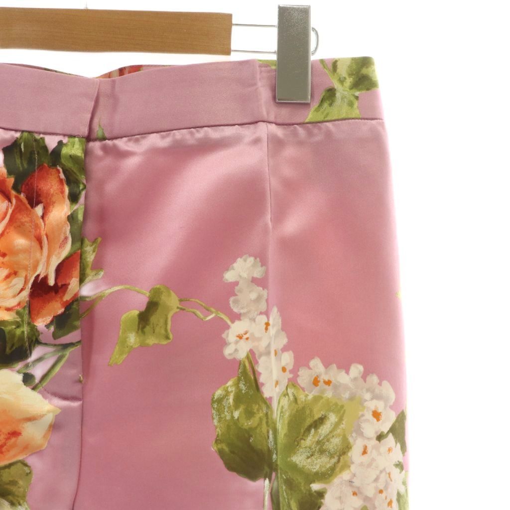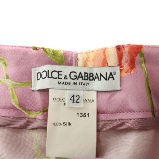 ドルチェ&ガッバーナ ドルガバ DOLCE&GABBANA パンツ スラックス 絹 シルク ストレート 花柄 総柄 ジップフライ 42 M 紫 パープル