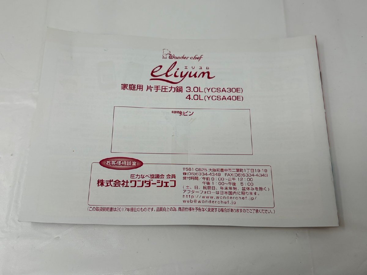 ◆WonderChef ワンダーシェフ 圧力鍋 4L エリユム 説明書付き 中古◆18824★