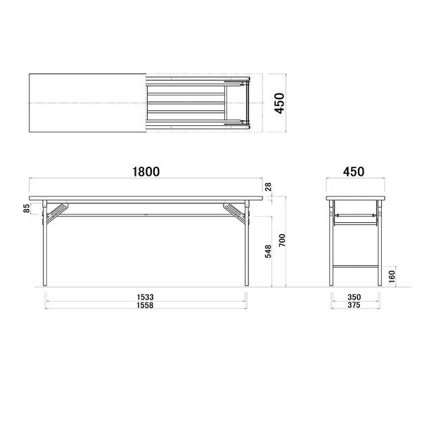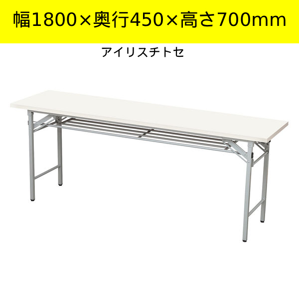 アイリスチトセ折りたたみテーブル棚付きアイボリー幅1800×奥行450×高さ700mm 1台 学校 会議 イベント 机 AK-OT-1845T-W管理YN258AF
