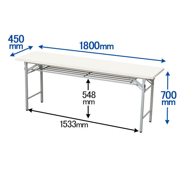 アイリスチトセ 折りたたみテーブル 棚付き アイボリー 幅1800×奥行450×高さ700mm 1台 学校 会議 イベント 机 AK-OT-1845T-W 管理番号YN258AF