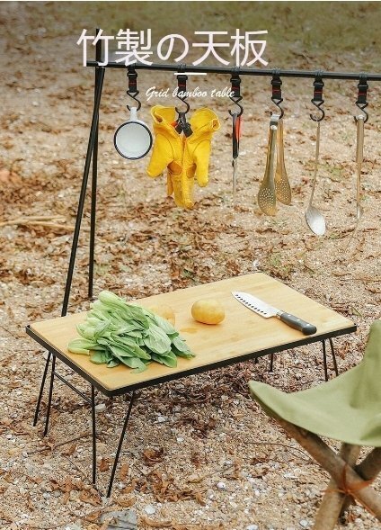 アウトドア テーブル 折り畳み メッシュ 竹製天板付き キャンプ バーベキュー 焚き火 テント