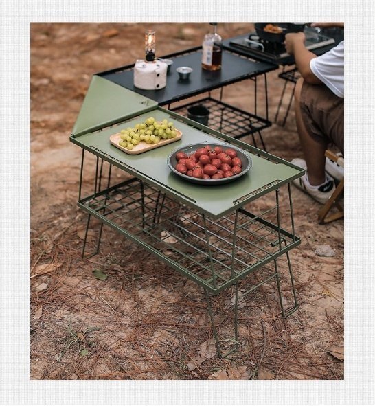 サブテーブル、クーラーボックス置き場、ストーブの台、キャンプ調理台、五徳として使用できます。