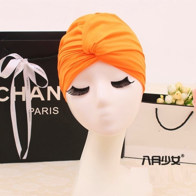 【 ジム や プール に♪】 お洒落な ターバン風 スイムキャップ フリーサイズ オレンジ OR♪水泳帽 夏 海 水泳帽子 男女兼用