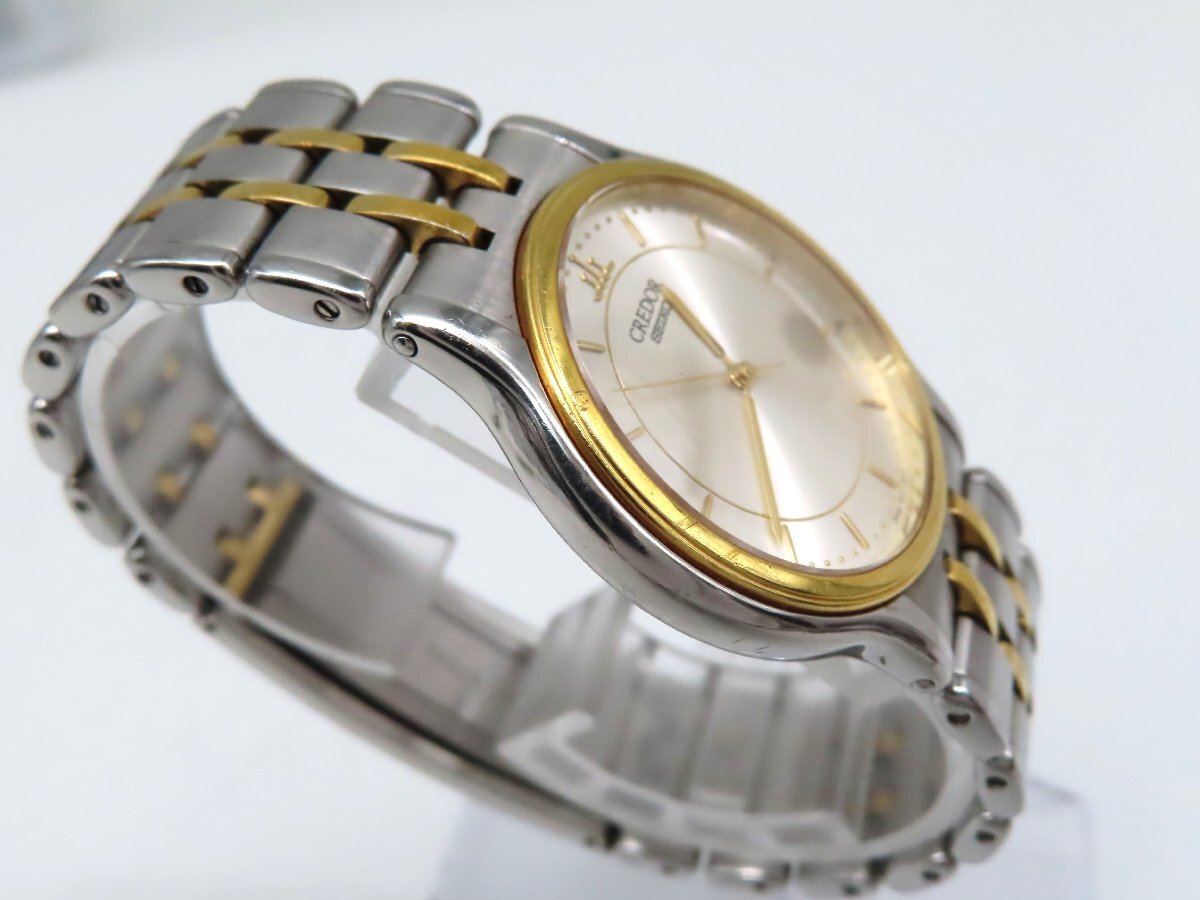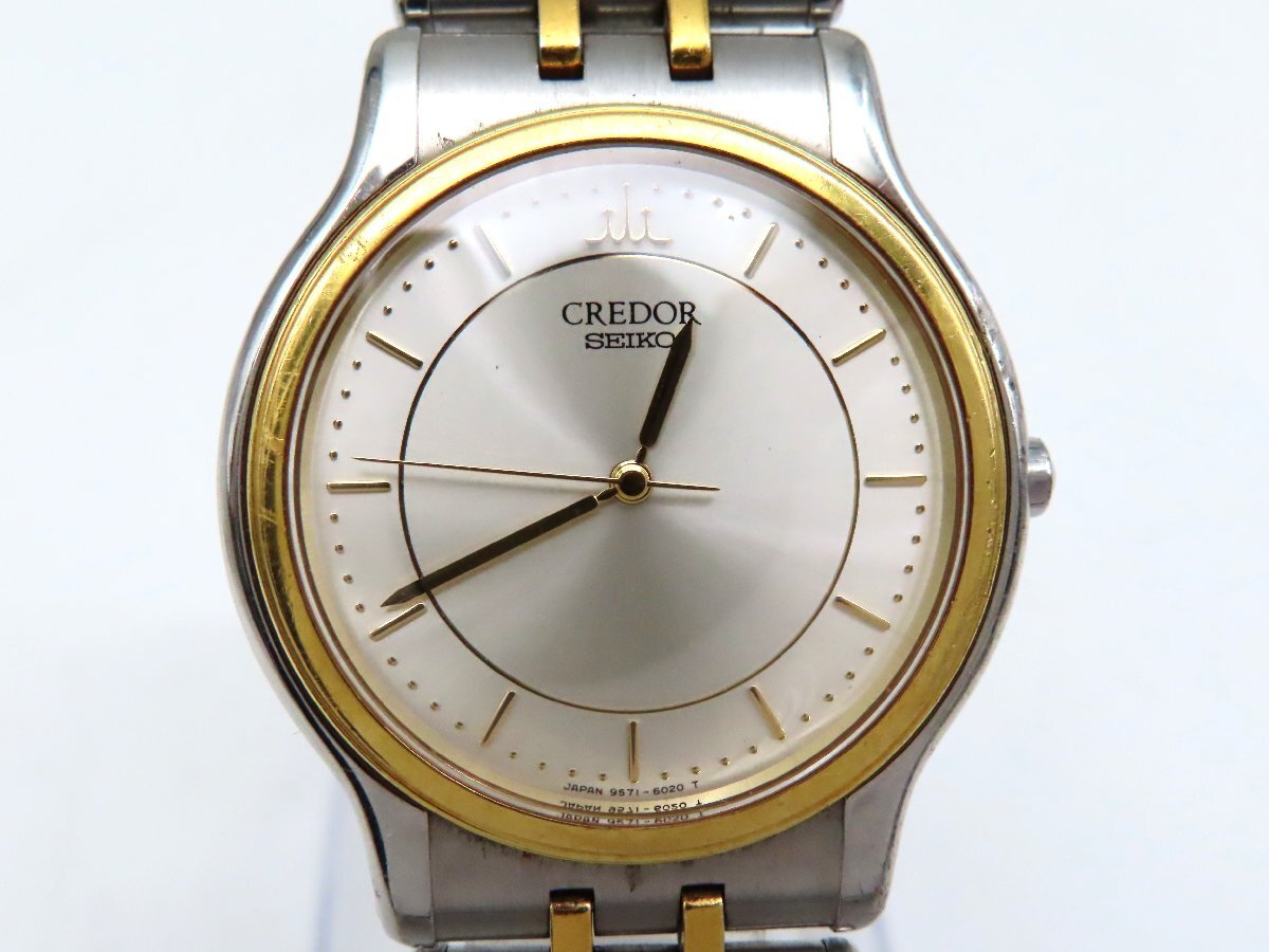 1円 セイコー 9571-6020 クレドール SS/18KT シルバー文字盤 ボーイズ 稼働 QZ 26217 SGRE