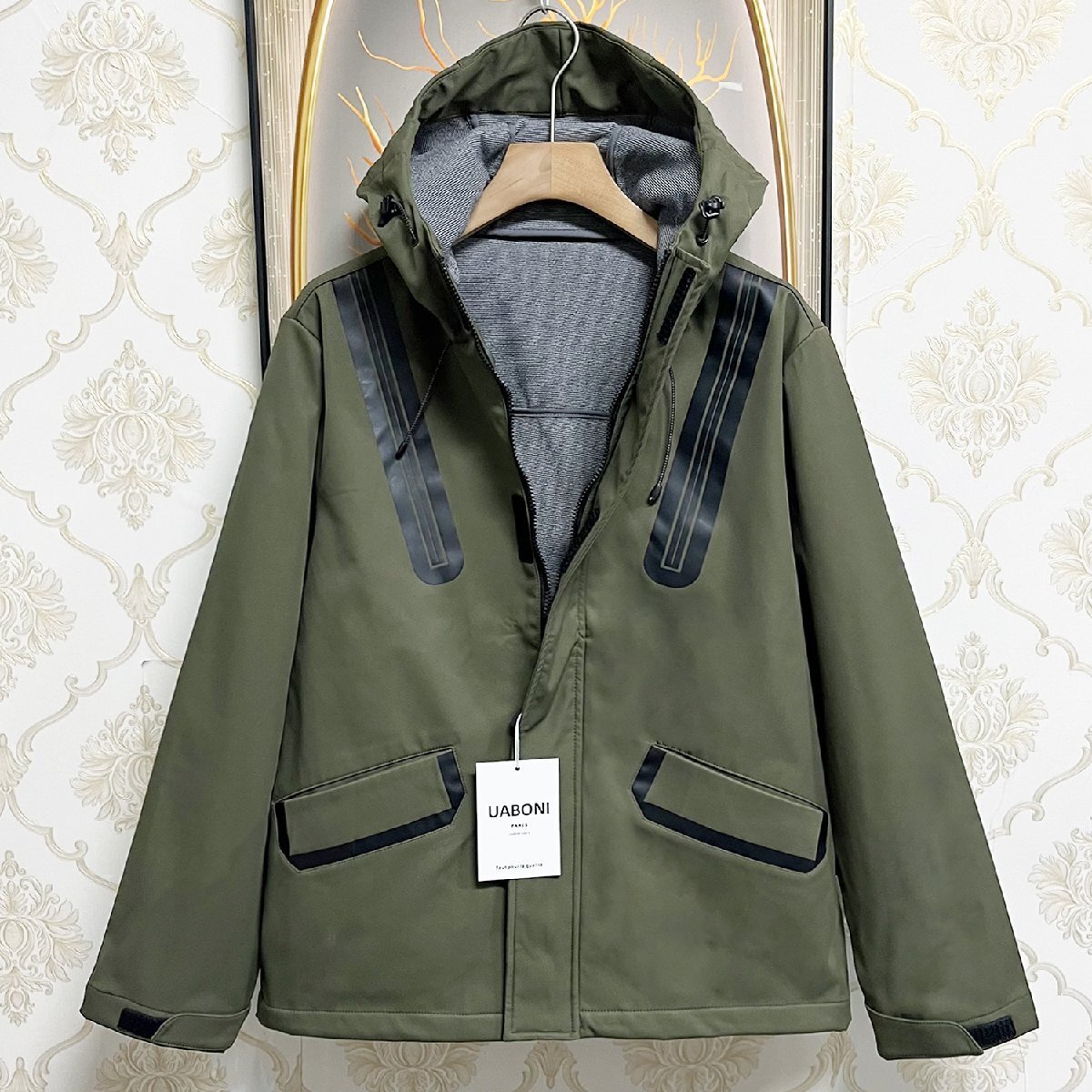 個性EU製&定価6万◆UABONI*Paris*ジャケット *ユアボニ*パリ発◆柔らか 防風 防水 フード付き カジュアル スポーツウェア アウター 登山 秋冬 L/48サイズ