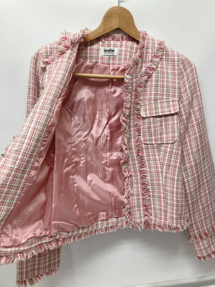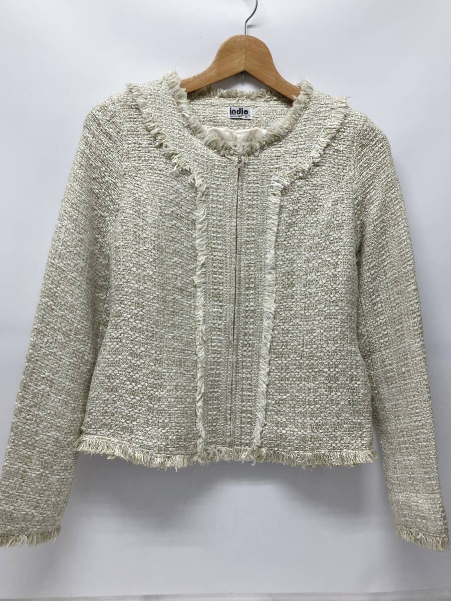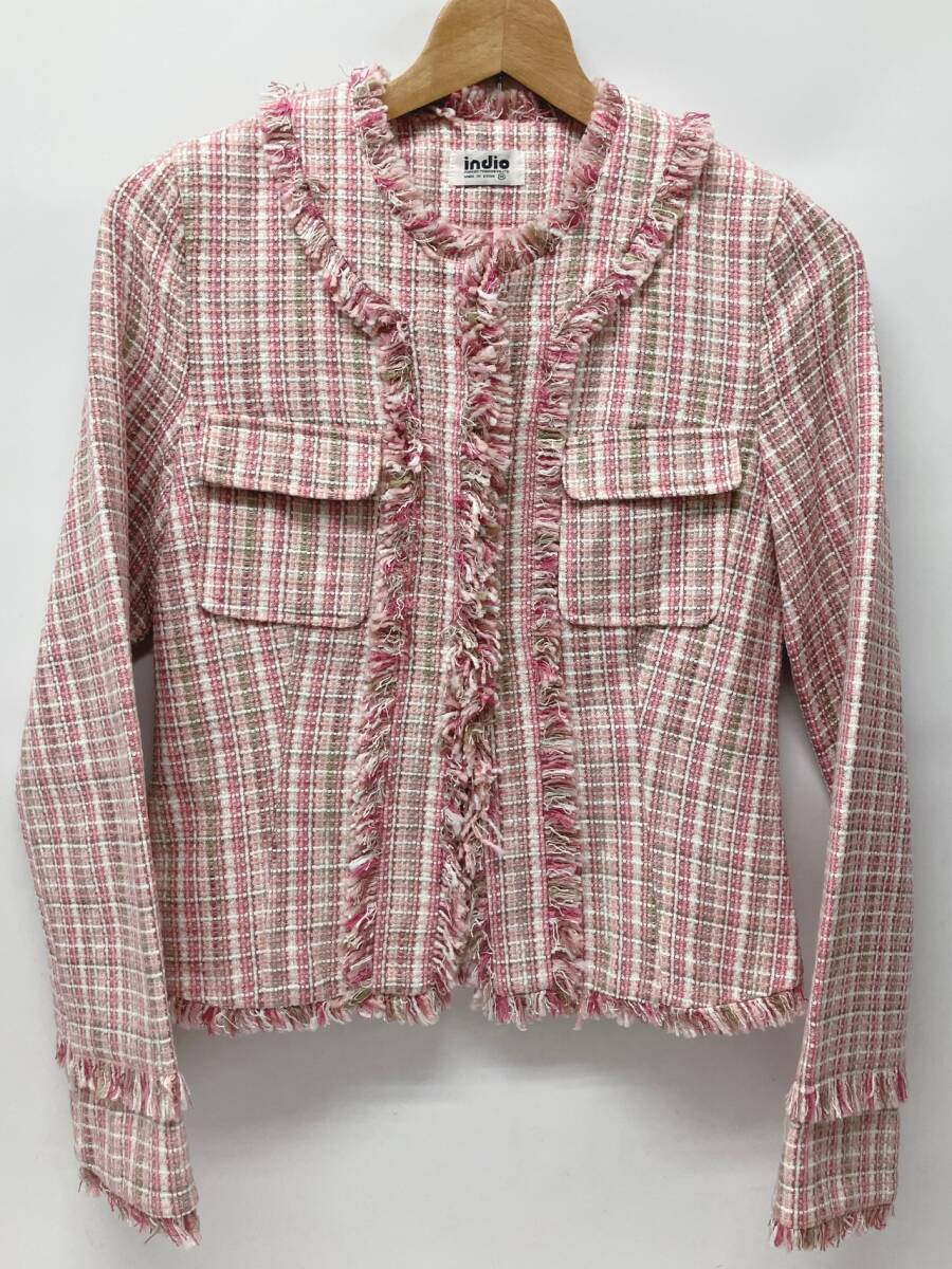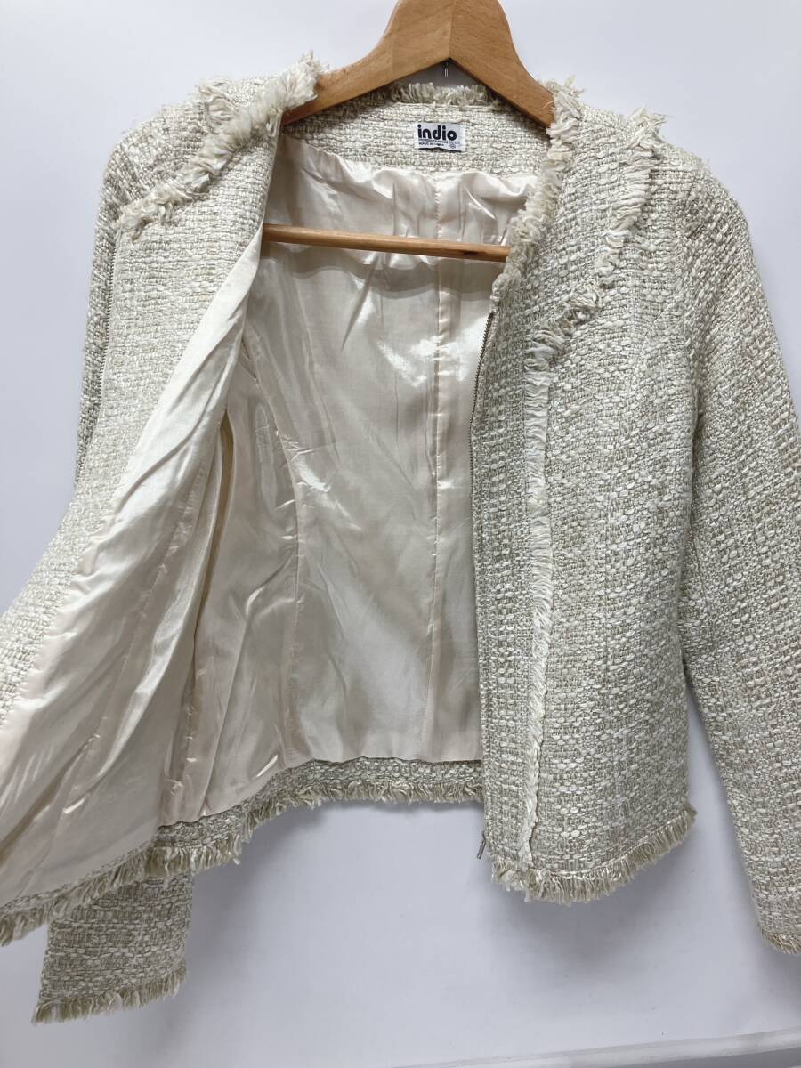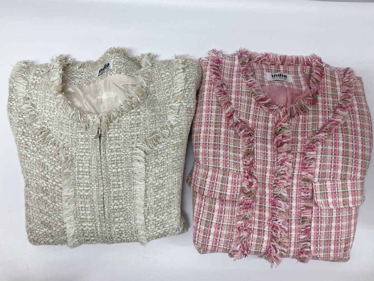【2点おまとめ】indio インディオ レディース Mサイズ ジャケット ツイード ノーカラー 管理ID1007