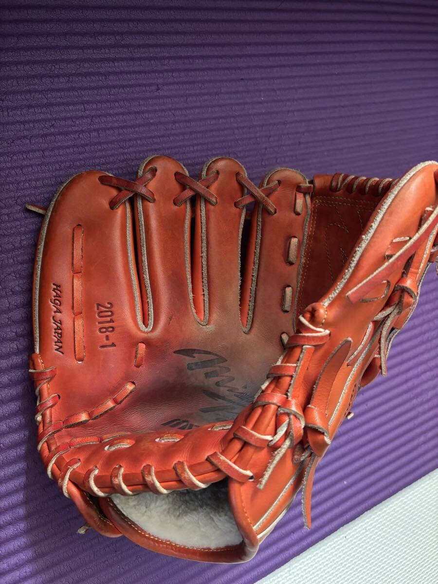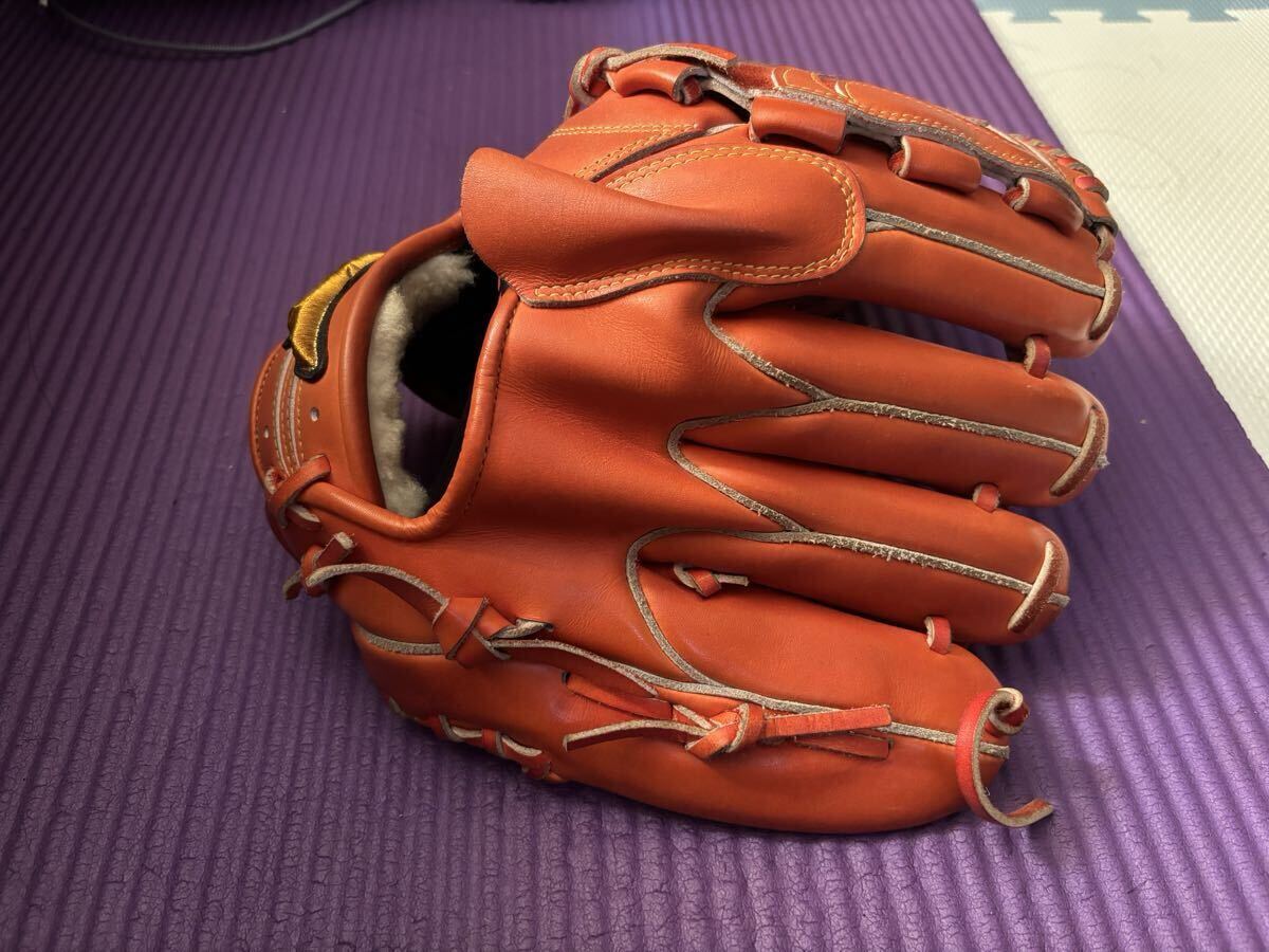使用状況 :2018年式ですが、使用期間は1年ほどになります。その後は室内にて保管してました。グローブの型はポケットをつくり関節を動くようにしただけなので型崩れもなく、皮の張りは抜群です。自分好みの形にまだまだできると思います。ウウェブは曲げてません。