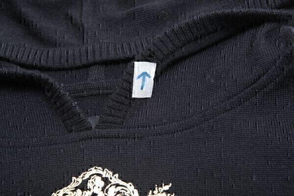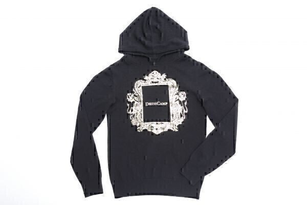 ★美品★DressCampドレスキャンプ ゴールドロゴプリント プルオーバーニットパーカー★46 M【5003-220805】ブラック黒【本物保証】難あり