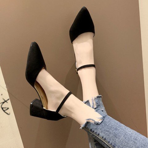 フェミニン アンクルストラップ パンプス チャンキーヒール 歩きやすい ポインテッドトゥ 大人美脚 シューズ パーティー