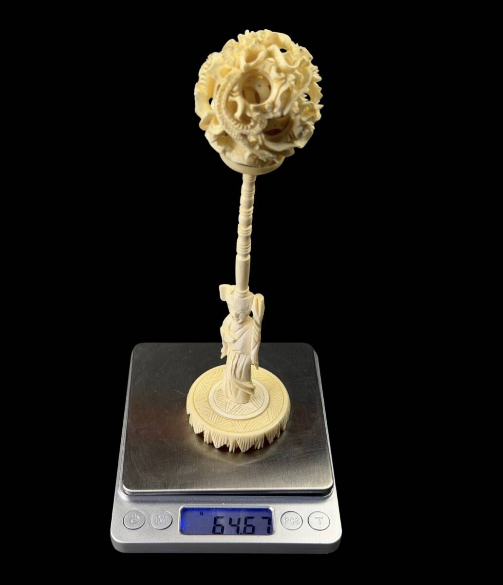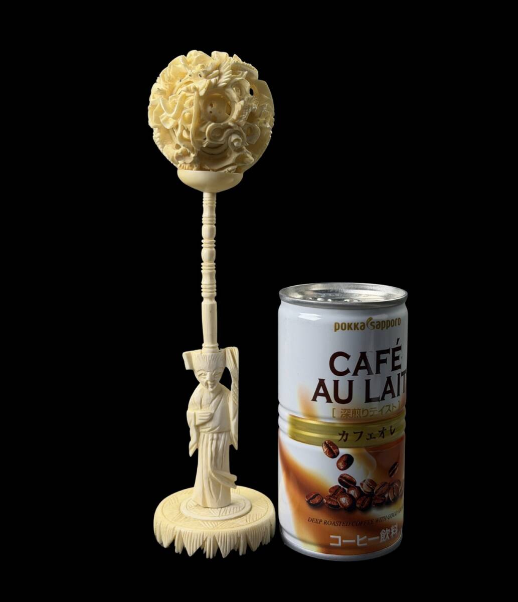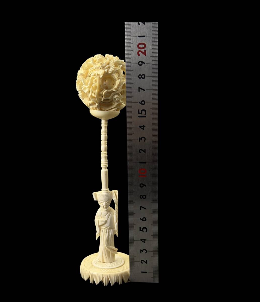 【偲】某有名オークション買入 鯨歯風 天然素材 時代物 雲龍紋天球 置物 骨董品 古美術  重約64.67g   高約20cm   r-951