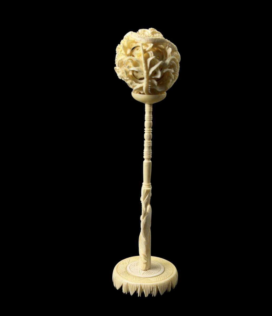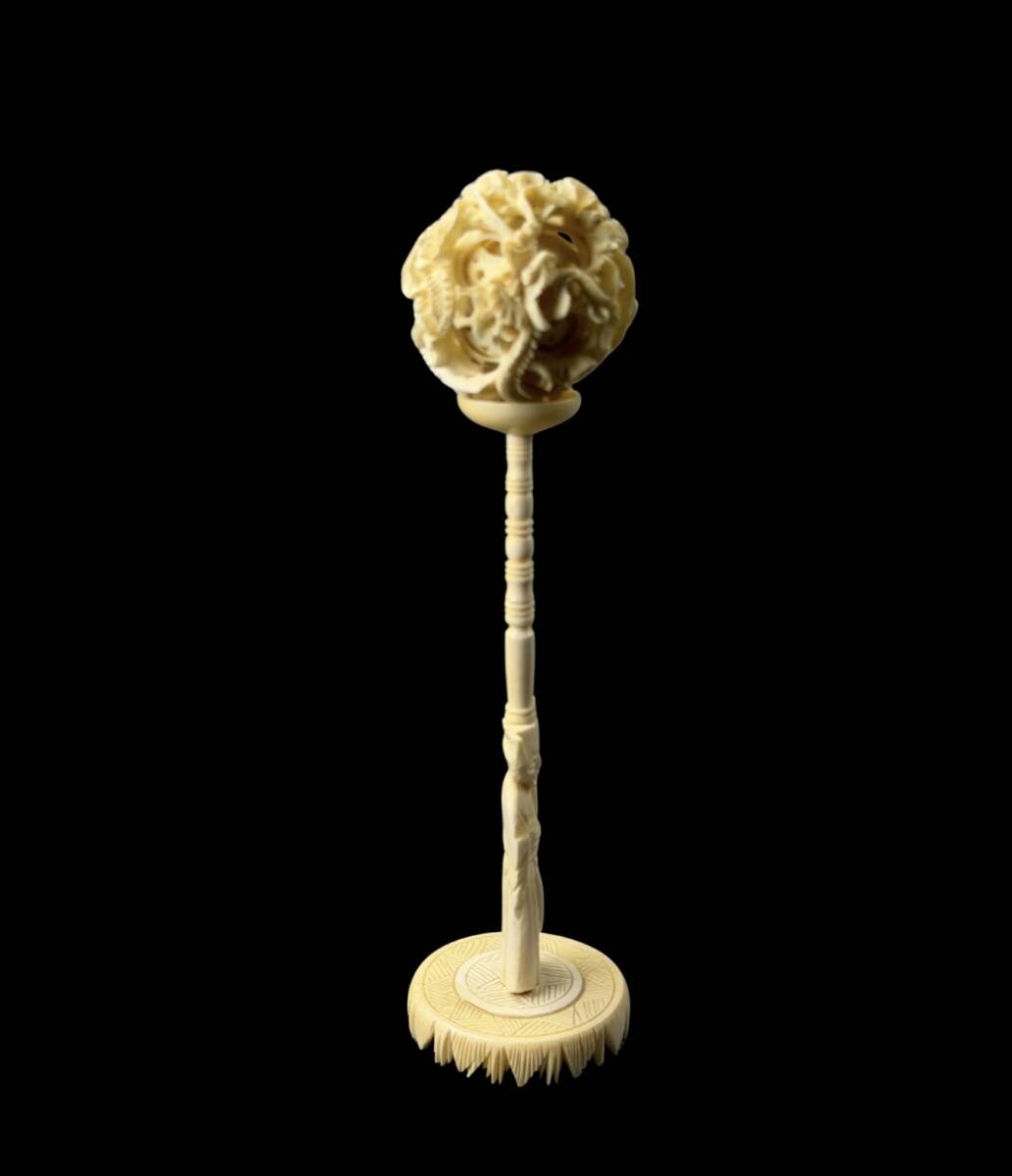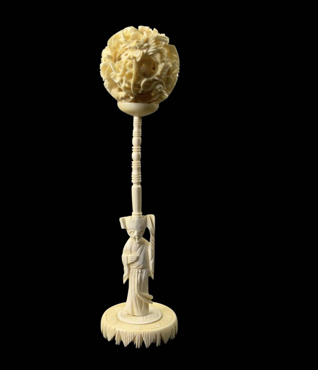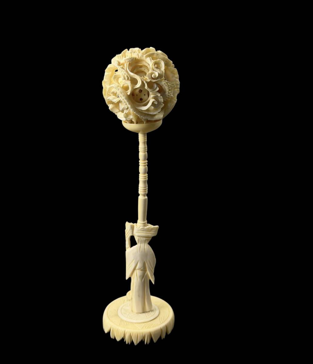 【偲】某有名オークション買入 鯨歯風 天然素材 時代物 雲龍紋天球 置物 骨董品 古美術  重約64.67g   高約20cm   r-951