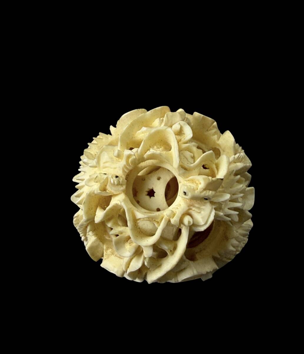 【偲】某有名オークション買入 鯨歯風 天然素材 時代物 雲龍紋天球 置物 骨董品 古美術 重約64.67g 高約20cm r-951