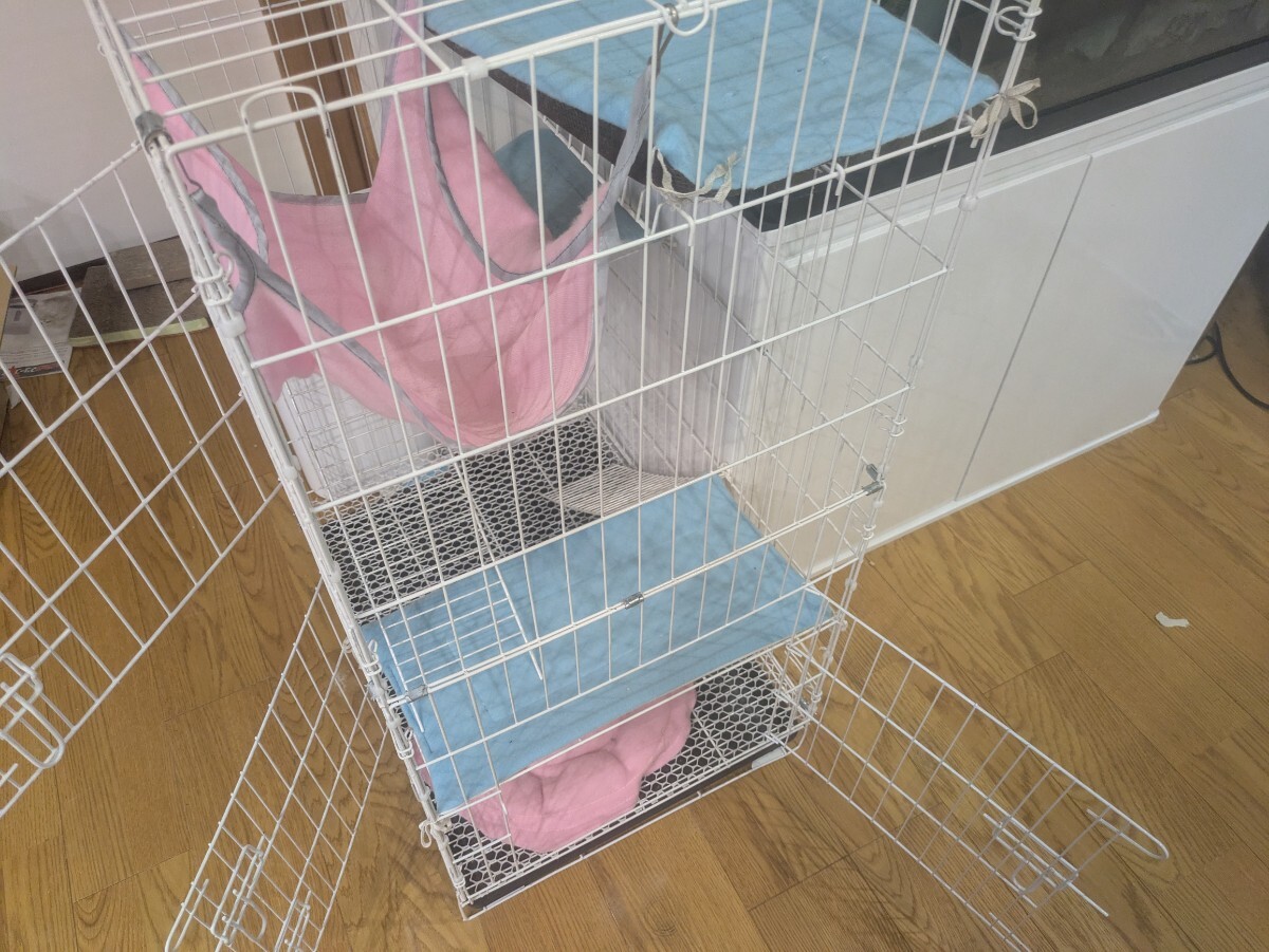 今年購入したのですが、だいぶ慣れてきたので、家中自由行動にしたので要らなくなりました。畳むのは大変なので引取希望です。マットやハンモックは毛だらけですが、安くするのでご了承ください。中古品の為ノークレームノーリターンでお願いします。福井県福井市出品です。