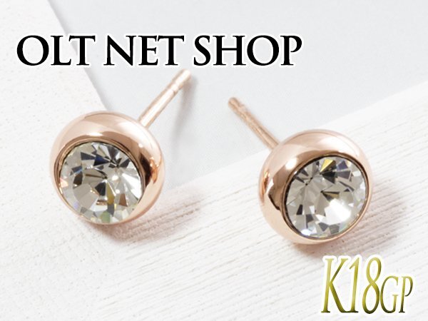 ピアス レディース クリア シンプル 小さい 小ぶり 18金 18kコーティング ピンクゴールド / K18GP CZダイヤ 一粒ピアス(クリアカラー)