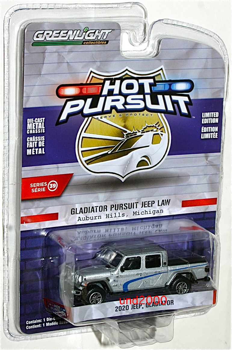 Green Light、Hot Pursuit Series 39、2020 Jeep Gladiator - Gladiator Pursuit Jeep Law - Auburn Hill Michigan。スケール1/64、トミカ・サイズ。並行輸入品。未開封新品。製造時のブリスターの処理が悪く、エッジがギザギザしています。また若干のスレがあります。量産品の製品のクオリティーについてはノークレームでお願いいたします。お支払いはヤフーかんたん決済のみ。東京発、ゆうパック持込60サイズ(東京700円 - 沖縄1330円)、レターパックプラス600円、または定形外郵便(追跡番号、保険無し)450円の発送となります。(上記の送料はこの出品物のみの料金となります。複数落札、同梱包発送の場合、重さ、サイズが変わりますので送料が変わります。)3日以内のご連絡、かんたん決済の支払期限内(通常5日、支払方法により異なります)のお支払い厳守でお願いします。入札される前に「自己紹介」もあわせてお読みください。 検索用ワード グリーン・ライト パトカー パトロールカー ポリス ポリスカー 警察 警視庁 Police Car オーバンヒルズ ミシガン