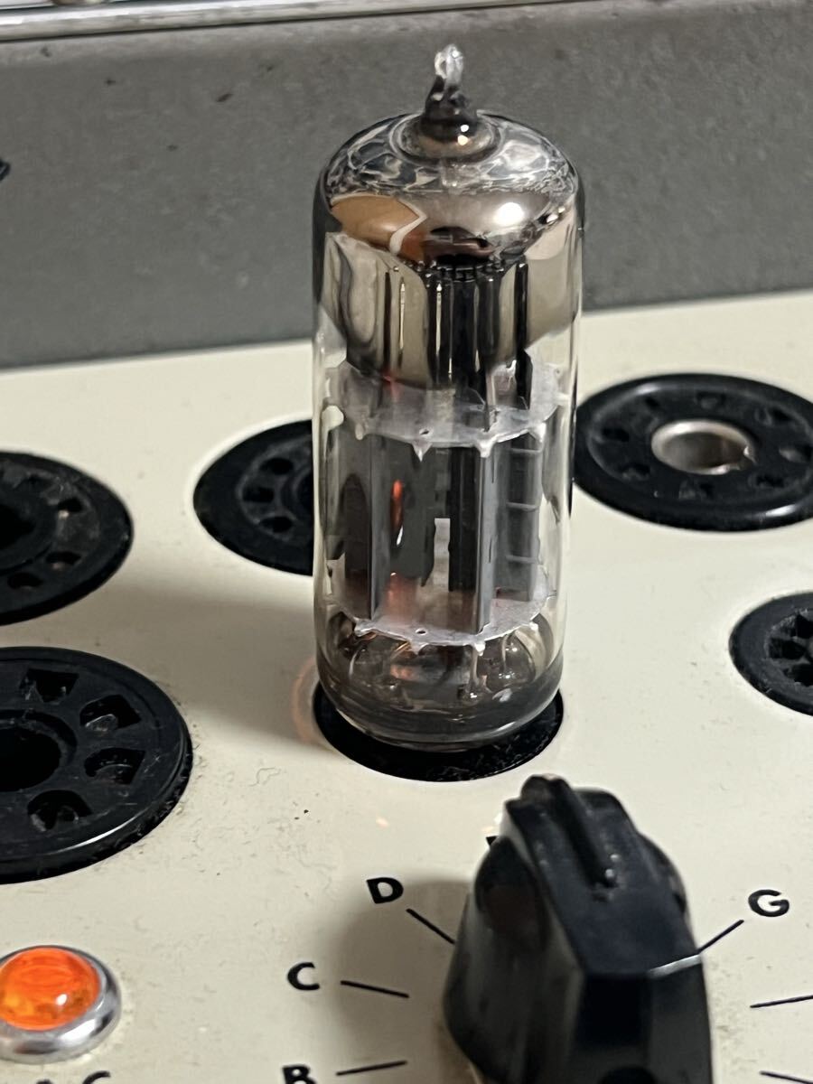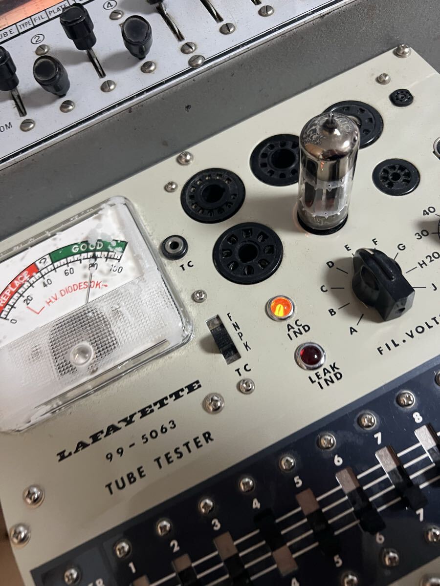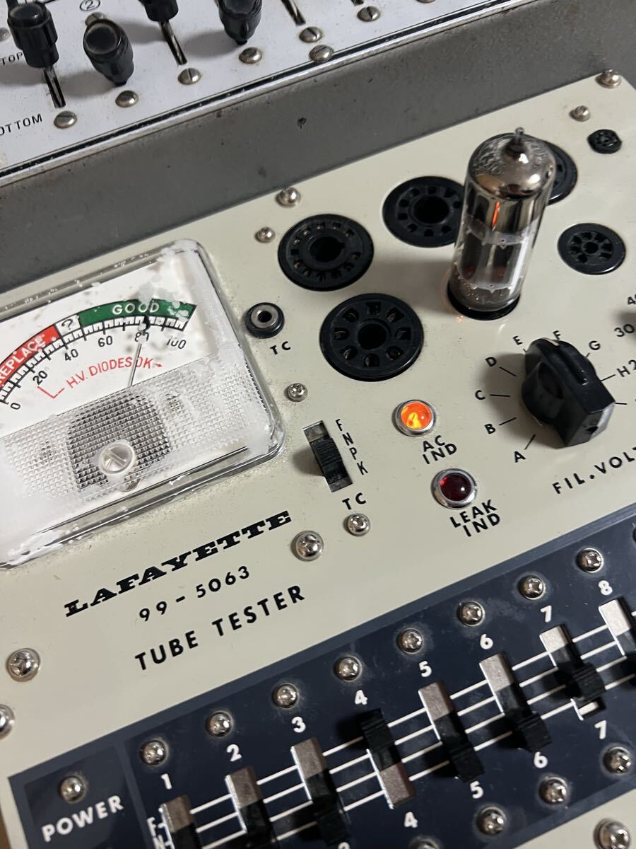 手持ちの真空管試験機(エミッション測定)で全数検査し