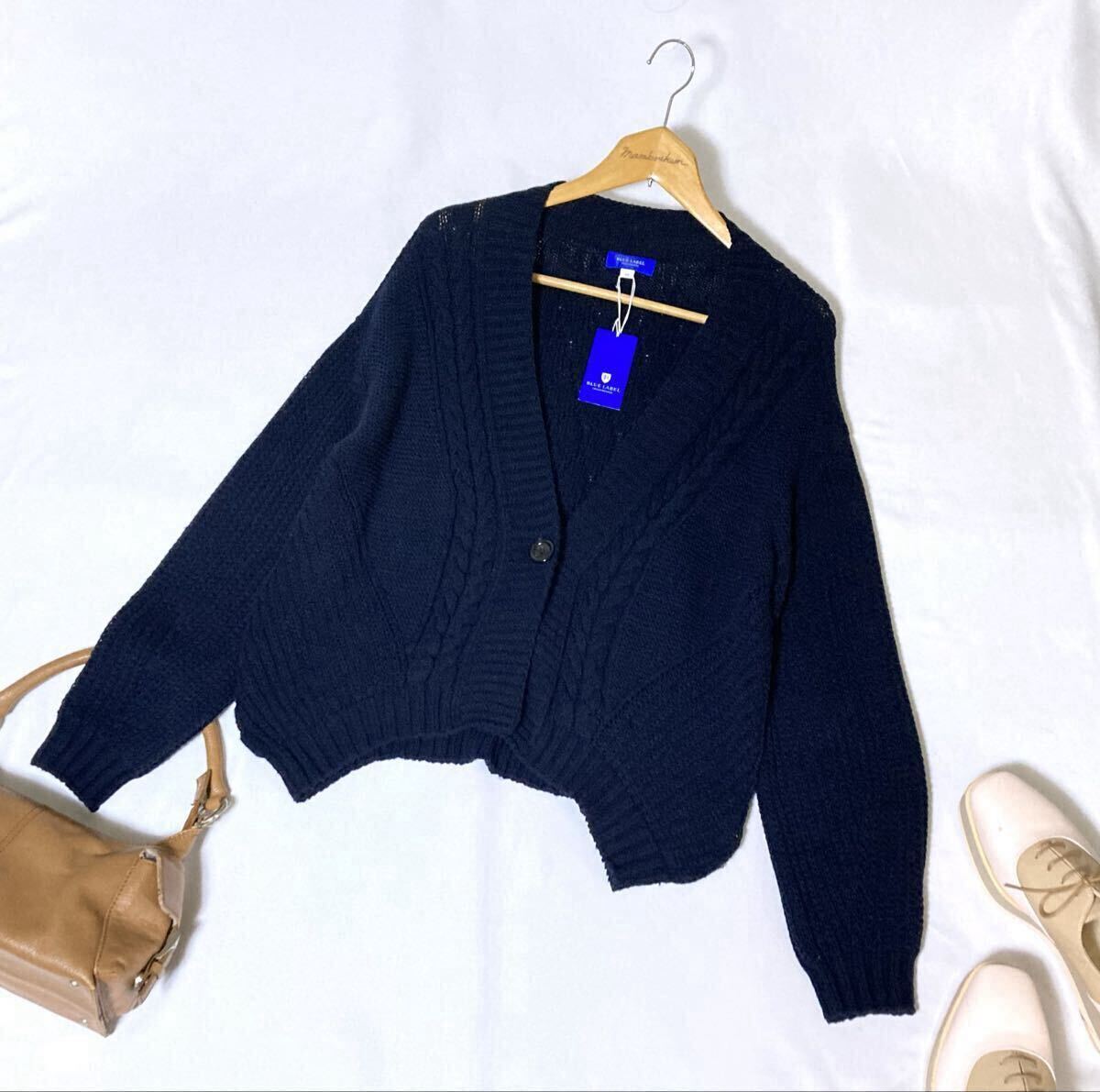 新品タグ付き ブルーレーベルクレストブリッジ ゆるっとおしゃれなケーブルニットのカーディガン 38 送料230円♪