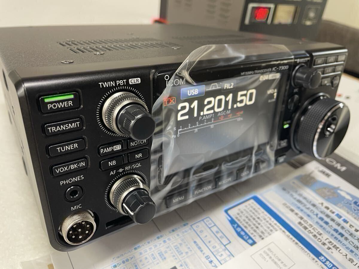 22年1月に新品購入後自宅保管していました。ICOM IC-7300 100w機です。写真撮影の為開封。