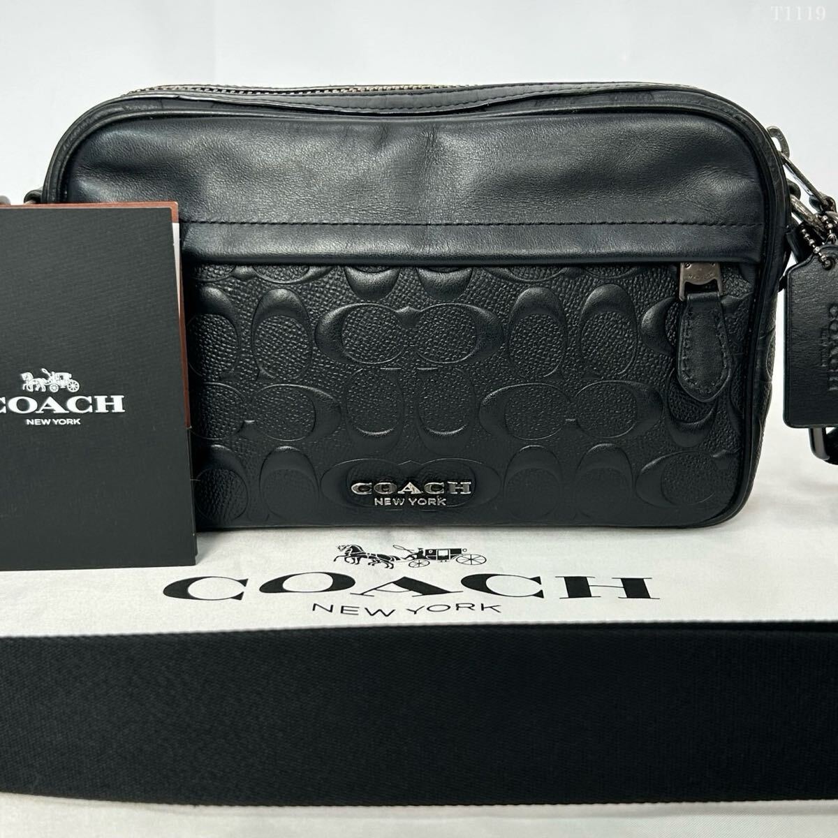 【入手困難品/極美品】コーチ COACH グラハム デポスド ショルダーバッグ クロスボディバッグ レザー メンズ 黒 シグネチャー 斜め掛け