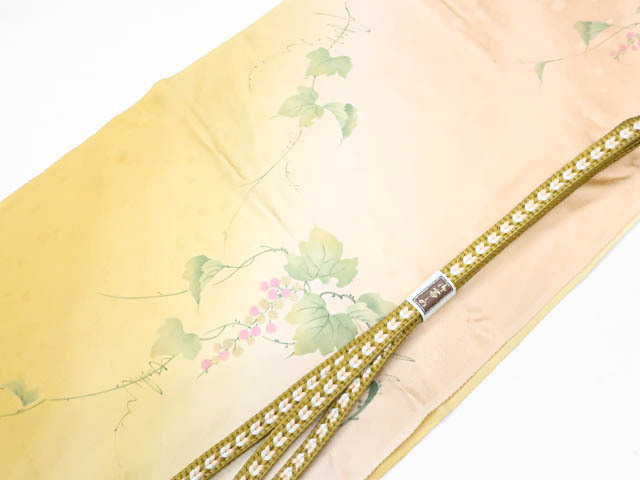 《京都一輝堂》リサイクル着物 和装小物 帯締め帯揚げセット 平組 葡萄唐草文 帯締 帯揚 25w07-8480
