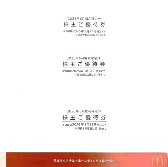 ★新着!マクドナルド株主優待券 6シート組3冊★2026年3月末まで
