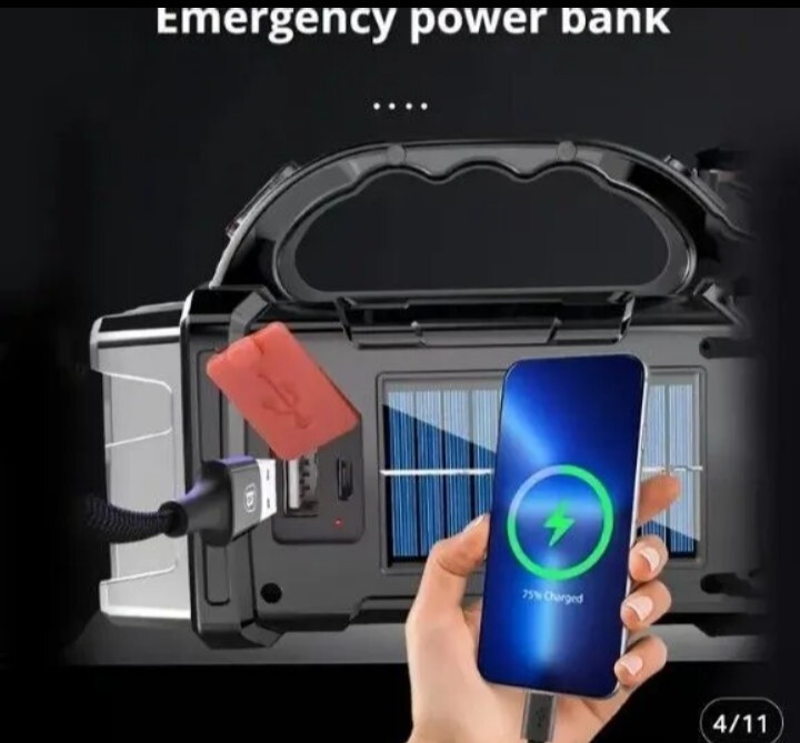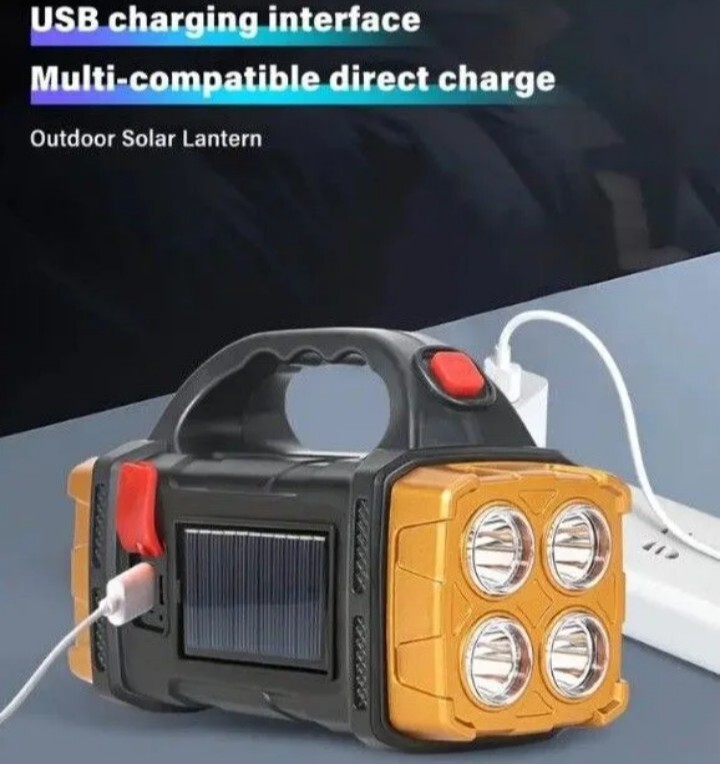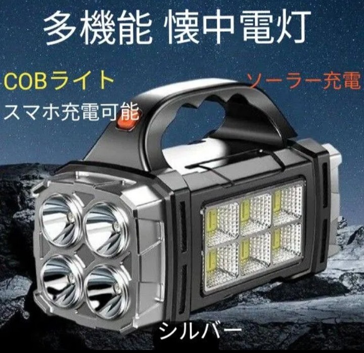 NEW】多機能 LED懐中電灯 充電式 4モード ソーラーパネル装備 防水 スマホ充電可能 アウトドア 防災ライト シルバー