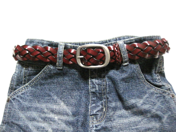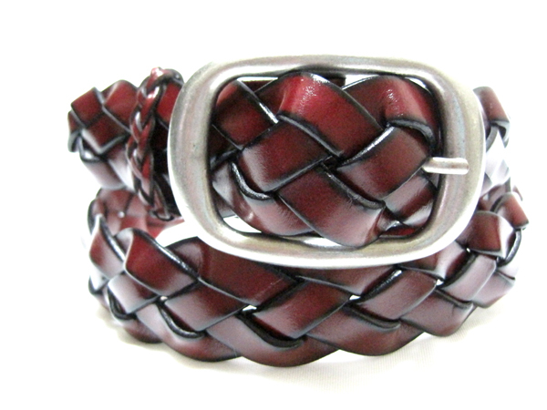BE669WA145★牛革メッシュ編みベルト★ワインレッド