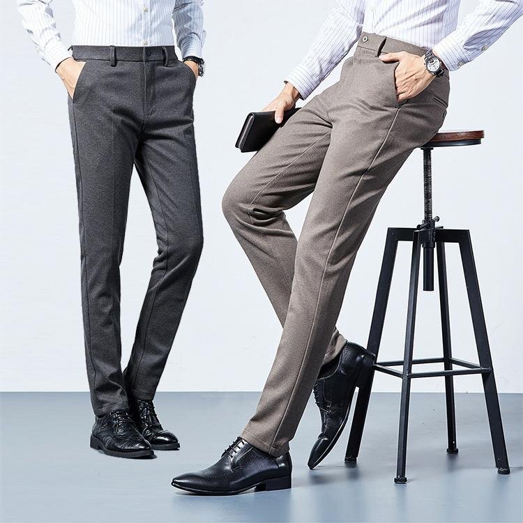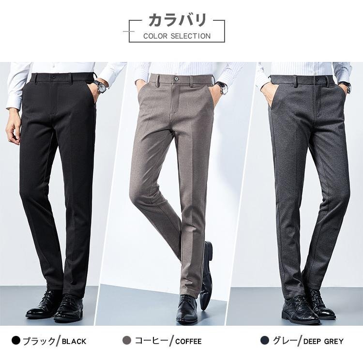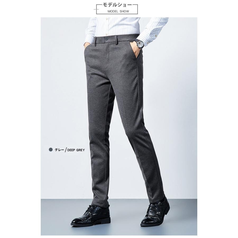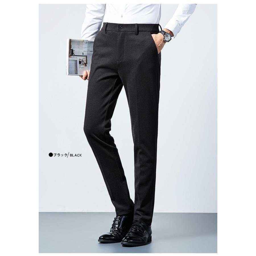 ビジネススラックス ノータック ロング メンズ 無地 シンプル ストレッチ 紳士 スリム 細身 洗える 通勤 オフィス 秋冬