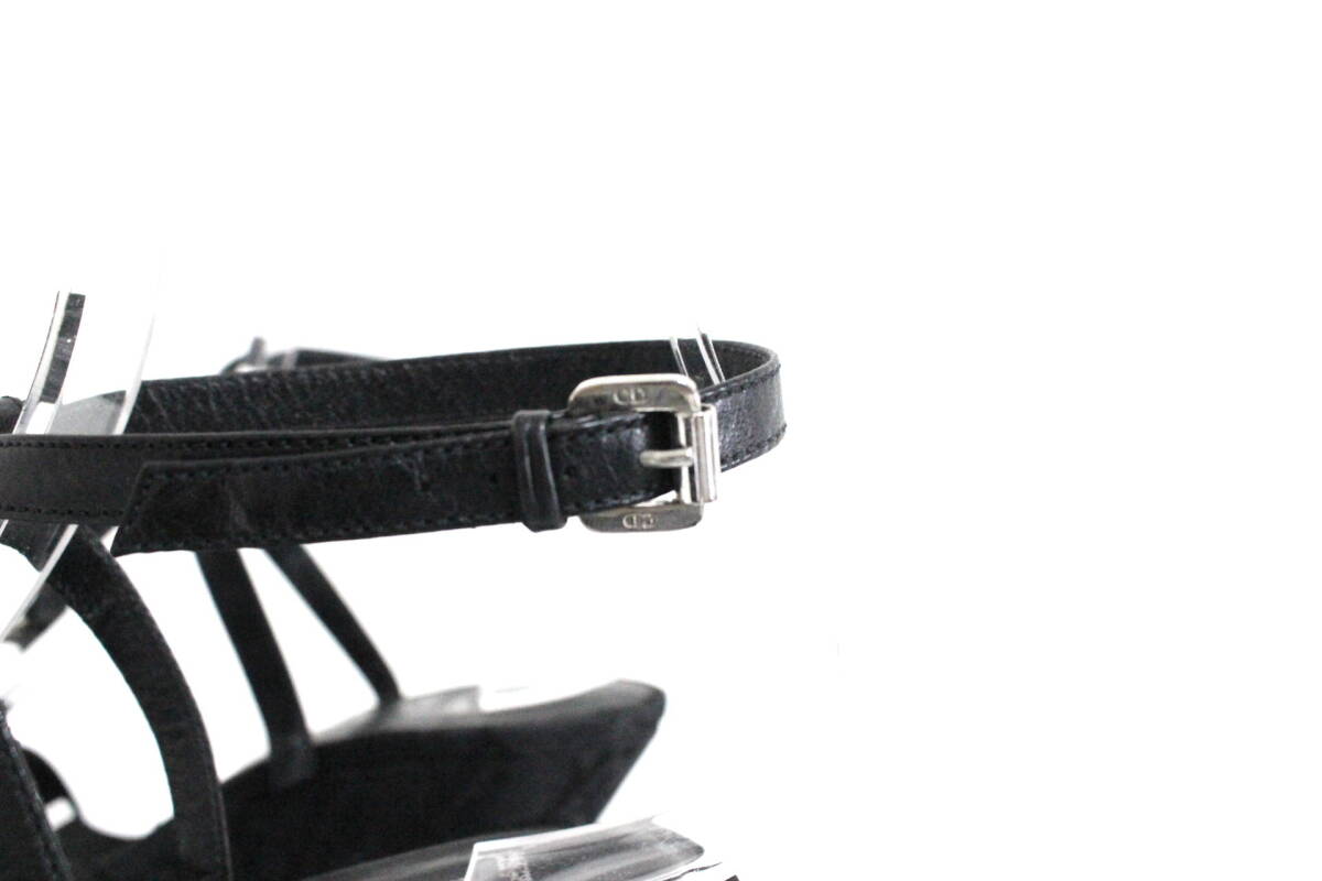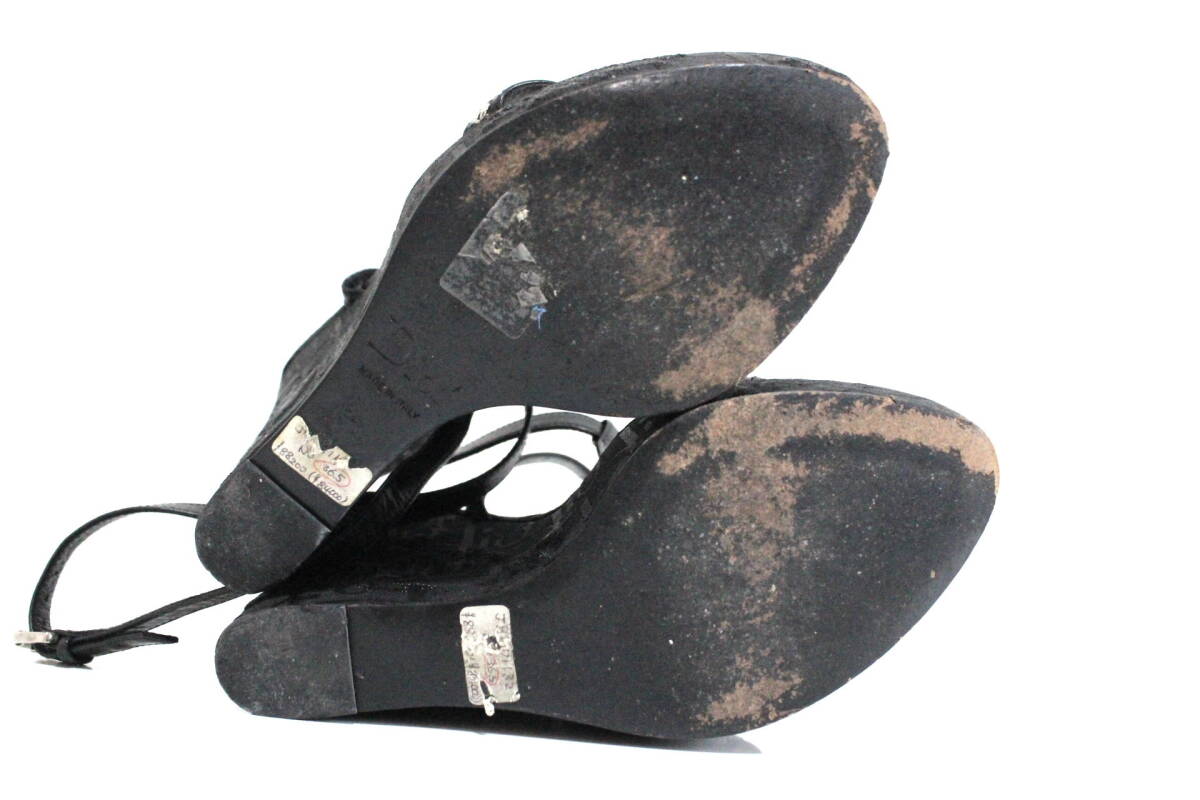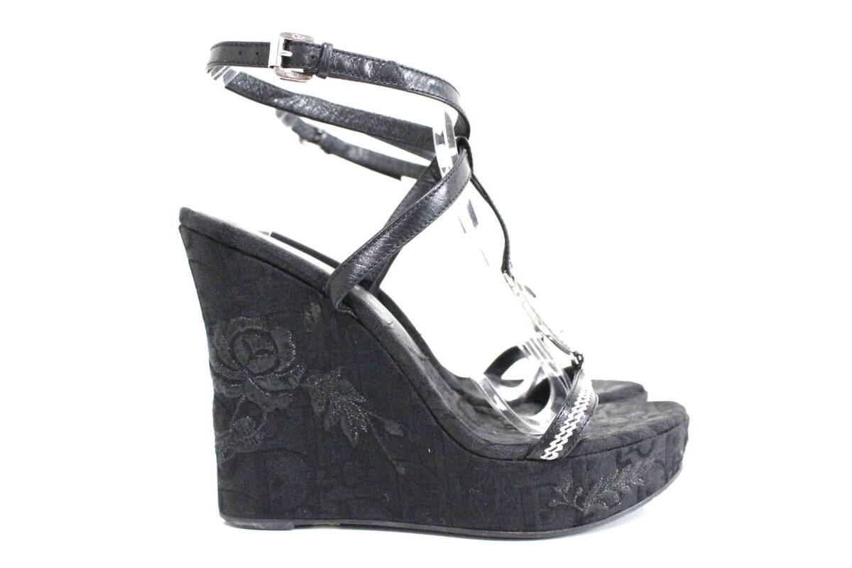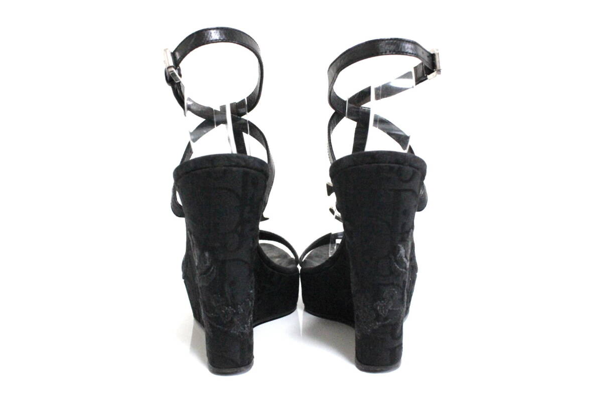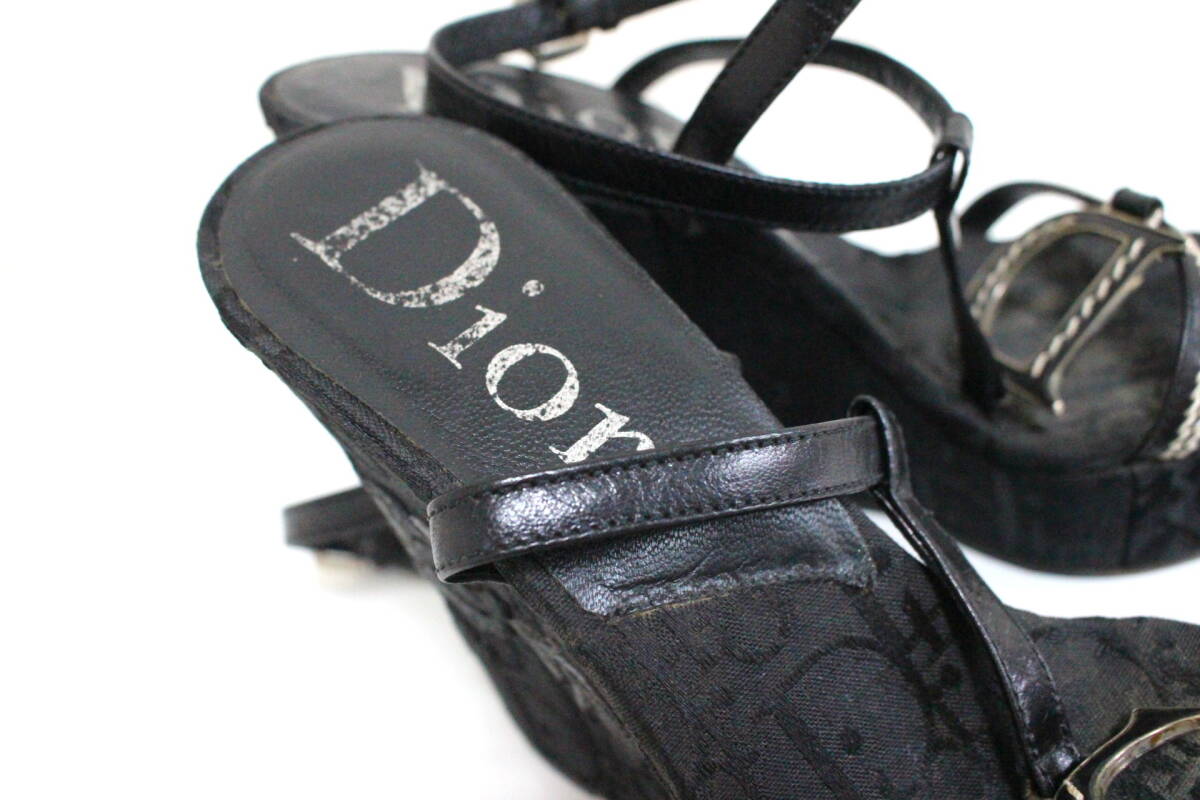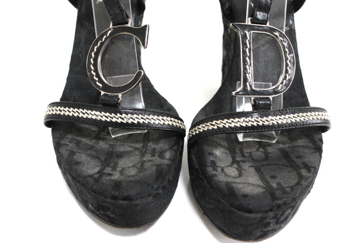 91 クリスチャンディオール DIOR VINTAGE CDロゴ トロッター柄 ウエッジサンダル ブラック 黒 36.5 YT991