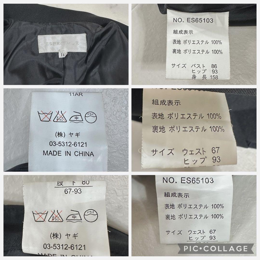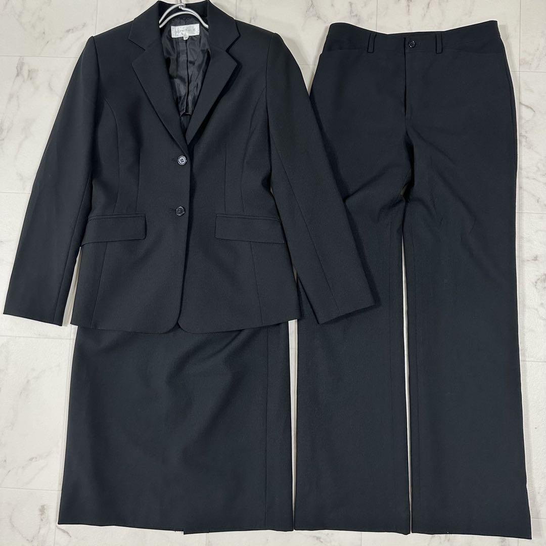 【美品】ESPRITMUR エスプリミュール スーツ3点セット(ジャケット・パンツ・スカート) リクルートスーツ 11号(L相当) ブラック 黒