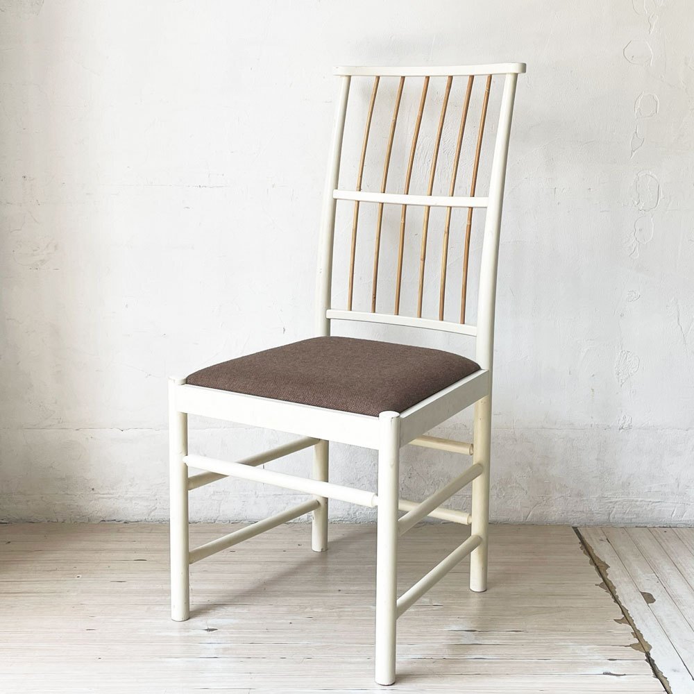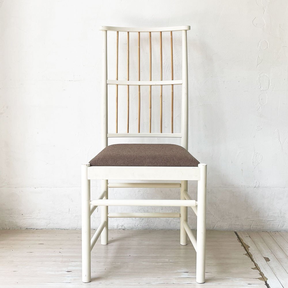 | コメント | ウィーン出身でスウェーデンで活躍したテキスタイルデザイナー、建築家"ヨーゼフ・フランク Josef Frank"。 独自のモダニズムを切り開き、独特で彩度の高い色彩と大胆なパターンや幾何学をモチーフにしたスタイルが特徴的です。 3000枚以上の家具のスケッチと250点以上のテキスタイルデザインを残したスウェーデンで最も重要なデザイナーの1人に数え上げられます。 そんな同氏がデザインしたのが、こちらの"ダイニングチェア Model2025"です。 ラッカー塗装のフレームに竹製のスポークがアクセントになっており、上品さと自然美を兼ね備えた一品。 僅かに反るような曲線を描く背もたれに対して、その他のパーツは直線を基調としている絶妙なバランスです。 柔らかさとシャープですっきりとした美しい印象が合わさり、自然と空間に馴染む洗練されたデザインになっております。 また脚部の貫は、前面とそれ以外の面で本数・高さに差を作り、建築物を彷彿とさせる美しい造形に。 装飾の無いミニマルなルックスながら、目を惹く佇まいに仕立て上げています。 落ち着いたブラウンカラーのシートは、しっかりとクッションが入っているので座り心地も快適です。 中古市場でも流通は少なく、日本国内では特に取り扱いの少ない希少なアイテム。 実用品としては勿論、見て楽しむ造形物の要素も強く、コレクションアイテムとしても大変お薦めの逸品となっております。 ※当ショップは、主にリサイクル品を取り扱っております。基本的にUSED品である事をご理解頂き、ご入札をご検討下さいませ。 |