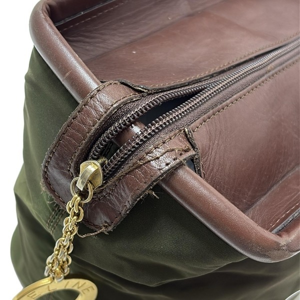 セリーヌ CELINE ハンドバッグ サークルロゴ レザー カーキ×ダークブラウン バッグ